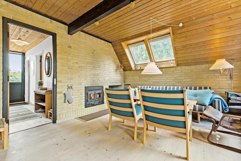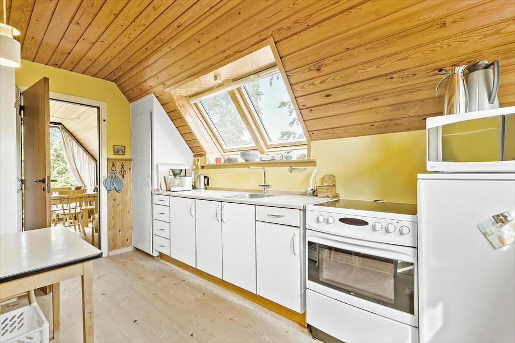 Træd ind i dette velindrettede og velholdte feriehus, hvor der er plads til afslapning og hygge. Det store, lyse køkken er centralt placeret og indbyder til samvær, da det er uden opvasker – her kan opvasken nydes i hinandens selskab. Køleskabet med lille fryseboks og skabene indeholder alt, hvad man får brug for til madlavning. Huset rummer i alt tre dejlige soveværelser, herunder et soveværelse og et nydeligt badeværelse med bruser i stueplan. Stuen er opdelt i to afdelinger: en spiseafdeling med direkte udgang til køkkenet samt en hyggelig stue med brændeovn og udgang til terrassen. Her er perfekte rammer for en hyggelig ferie med familie og venner.