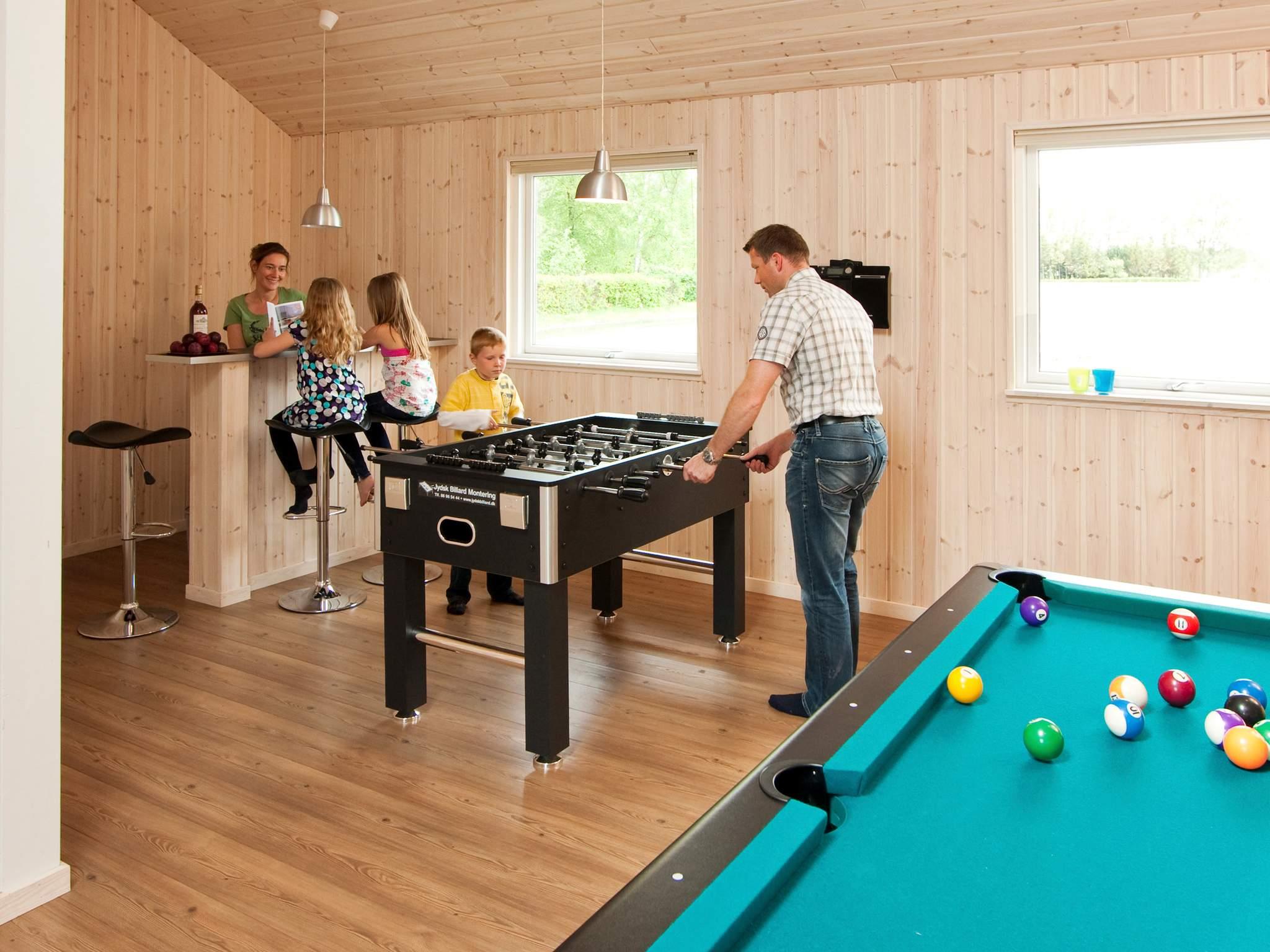 Velindrettet sommerhus ved Ahl Strand med swimmingpool og aktivitetsrum der ganske enkelt rummer alt, hvad hjertet kan begære af aktivitets-og udfoldelsesmuligheder. Husets poolafdeling indeholder både stor swimmingpool, vandrutschebane, stor indbygget spabad og sauna med plads til 4-6 personer. I aktivitetsrummet hvor der er bar med musikanlæg, kan I tage et spil dart, billard eller pool ved poolbordet, spille bordtennis eller bordfodbold. Der er PlayStation 2 og 4 (uden spil).