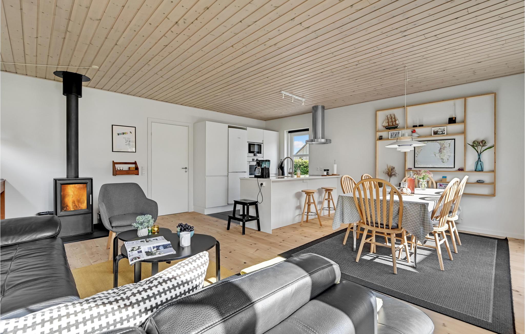 Flot, spændende og moderne sommerhus, beliggende i meget attraktivt område med bl.a. gåafstand til skov og strand, samt kort afstand i bil eller via stisystem til Ebeltoft by. Populær og dejlig børnevenlig sandstand samt rigtige gode muligheder for bl.a. kitesurfing. Huset er beliggende på fin grund med gode terrasser og græsareal. Udendørs er der flere bl.a. gynger til børn. Indendørs er der en populær udkigs/ legehems, 3 gode værelser, samt pænt bdeværelser og veludstyret køkken. Nyd et dejlig ophold i et moderne og spændende sommerhus.