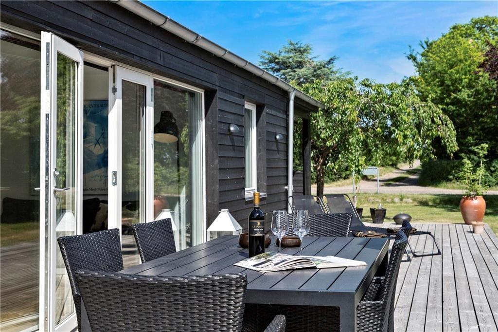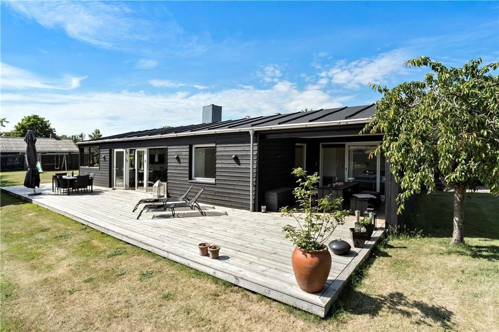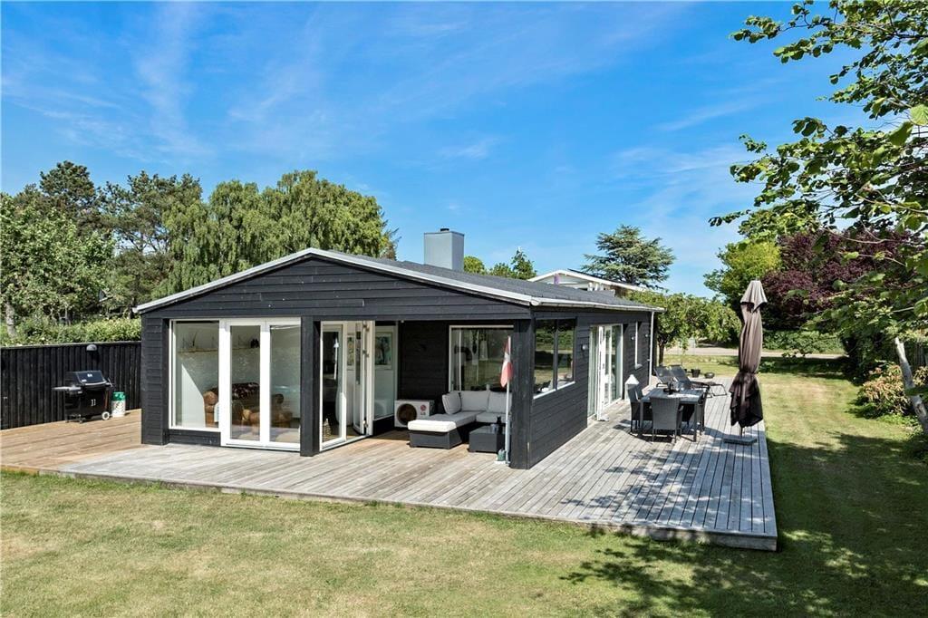 Udenfor fortsætter feriestemningen. Den store træterrasse omslutter huset og giver dig de bedste rammer for måltider under åben himmel, rolige pauser i solen og hyggelige aftener i den friske luft. Du kan begynde dagen med fuglesang og lys morgenluft, eller lade eftermiddagen glide stille forbi i en havestol med udsigt til haven. Når aftenen nærmer sig, kan du tænde grillen og lade den dejlige duft fra maden sprede sig mens himlen gløder i bløde farver. Haven er grøn og ugeneret, og der er god plads til både leg, afslapning og rolige stunder sammen. Her kan du læne dig tilbage og nyde ferien i dit eget tempo, helt uden planer og uden forstyrrelser.
