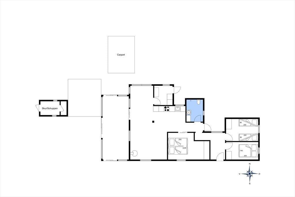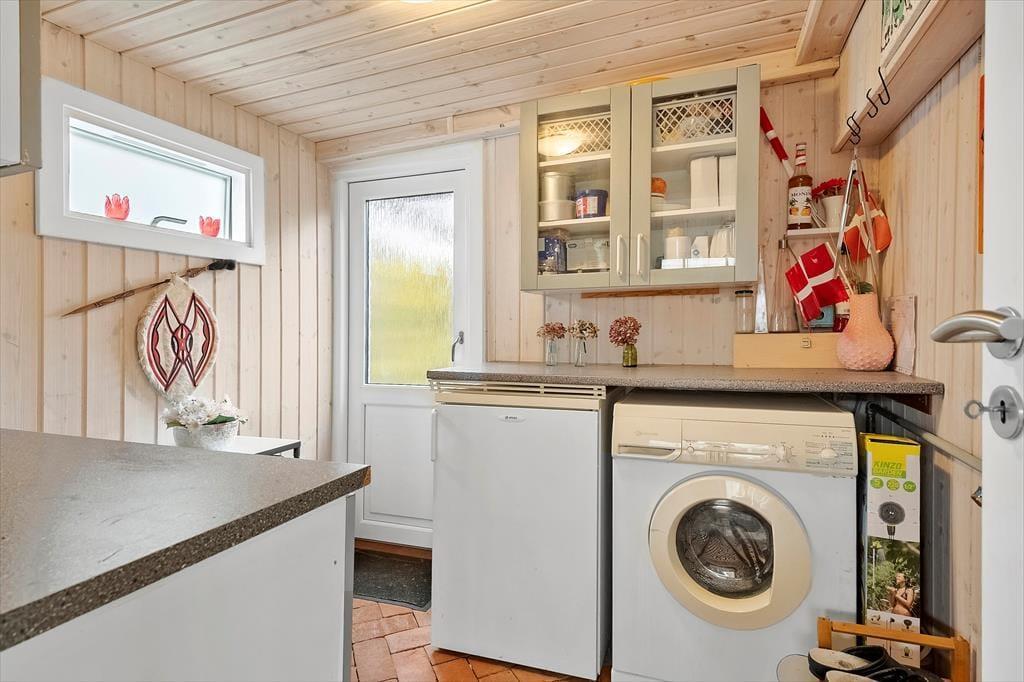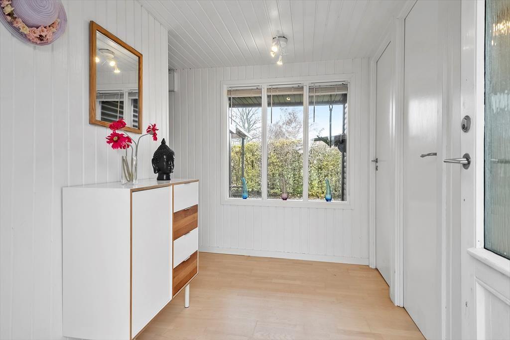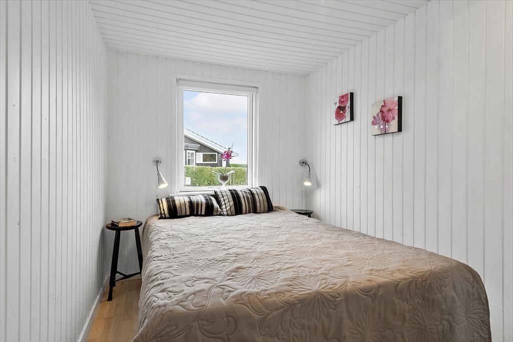 Indenfor møder du et lyst og indbydende sommerhus, hvor de store vinduespartier giver et naturligt lys og en fornemmelse af at have naturen tæt på, selv når du opholder dig inde. Havestuen fungerer som et blødt mellemrum mellem ude og inde, og den bliver hurtigt et sted, hvor I samles i løbet af dagen. Måske med en kop te, et godt spil, en hyggelig snak eller blot stille tid med en bog. Køkken og stue ligger i åben forbindelse med hinanden, så hverdagsrutiner falder naturligt ind i samværet. I de tre soveværelser er indretningen enkel og venlig, så du får den ro, du har brug for. Det er nemt at lande her og føle, at du hører til allerede fra første øjeblik.