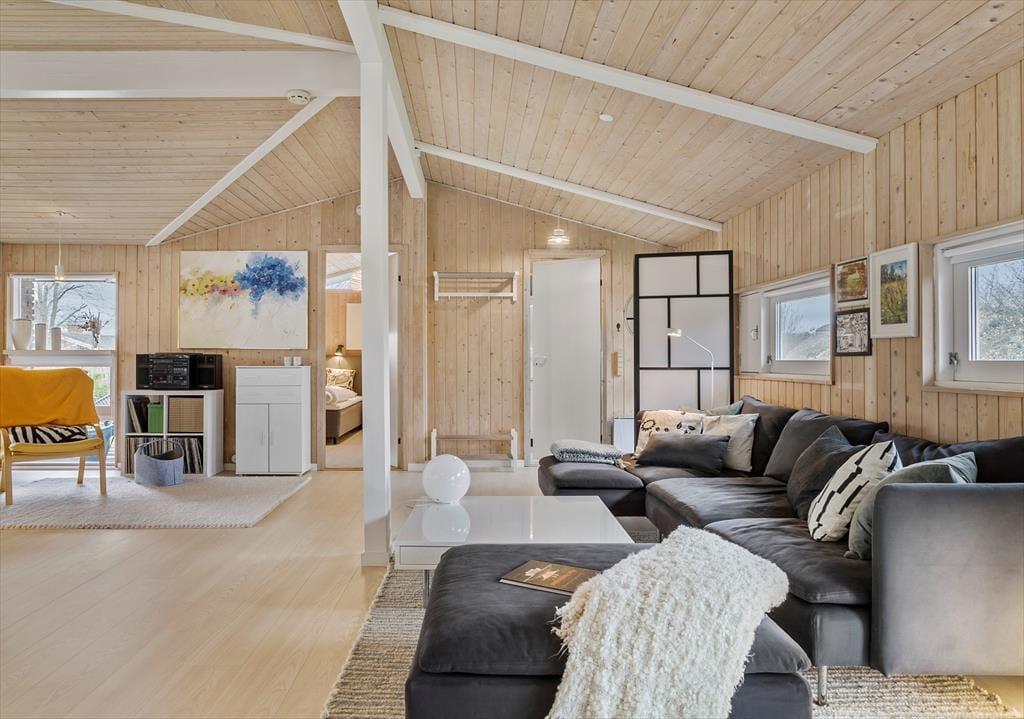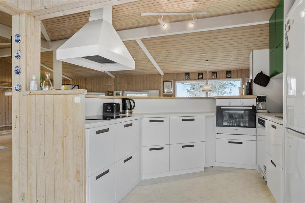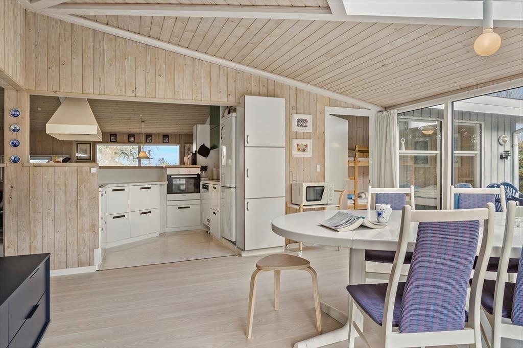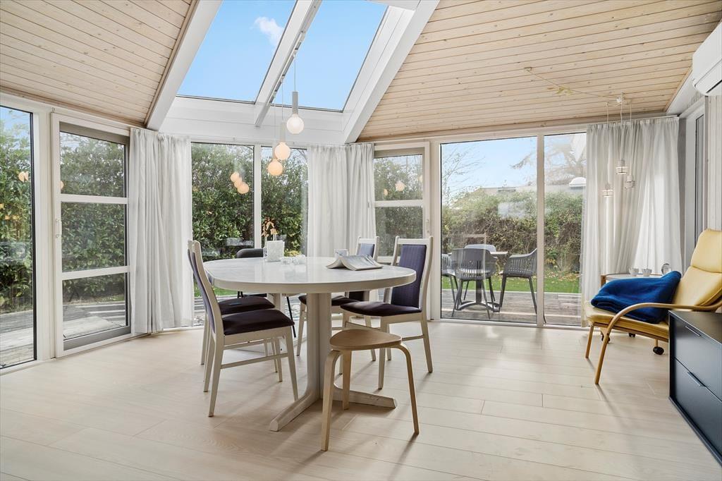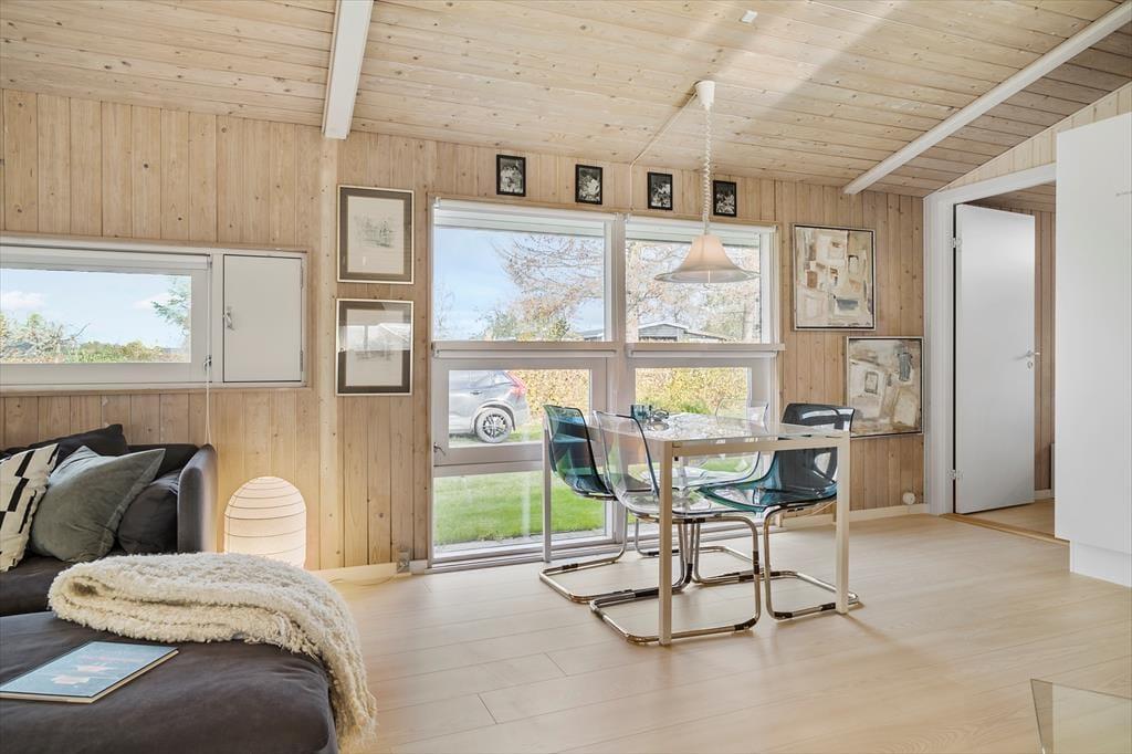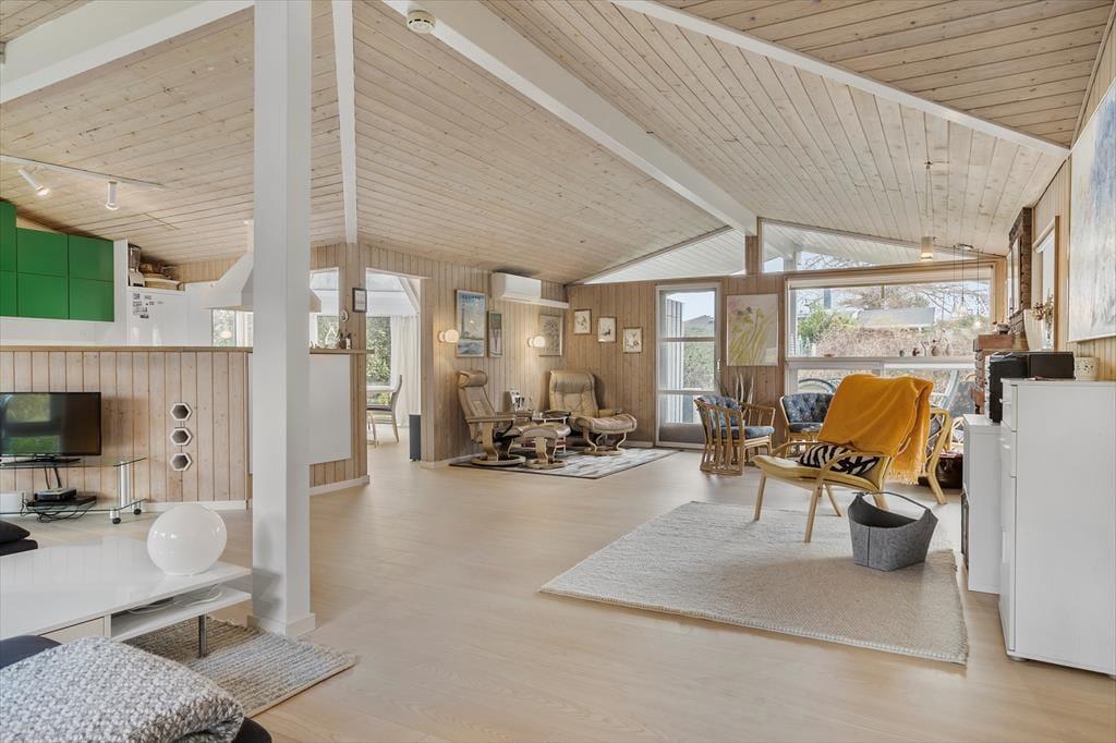 Når du træder ind i ferieboligen, mødes du af et åbent og indbydende opholdsrum, hvor både ro og nærvær får lov at fylde. Indretningen er moderne og gennemført, så du let kan tilberede et måltid i køkkenet, mens samtalen flyder ved spisebordet, eller du kan læne dig tilbage i stuen med udsigt til haven. De forskellige opholdszoner giver mulighed for samvær, men også for rolige stunder, hvor du bare kan slappe af med en bog eller nyde morgensolen gennem vinduerne. Her mærker du hurtigt feriestemningen brede sig og hverdagen glide i baggrunden.
