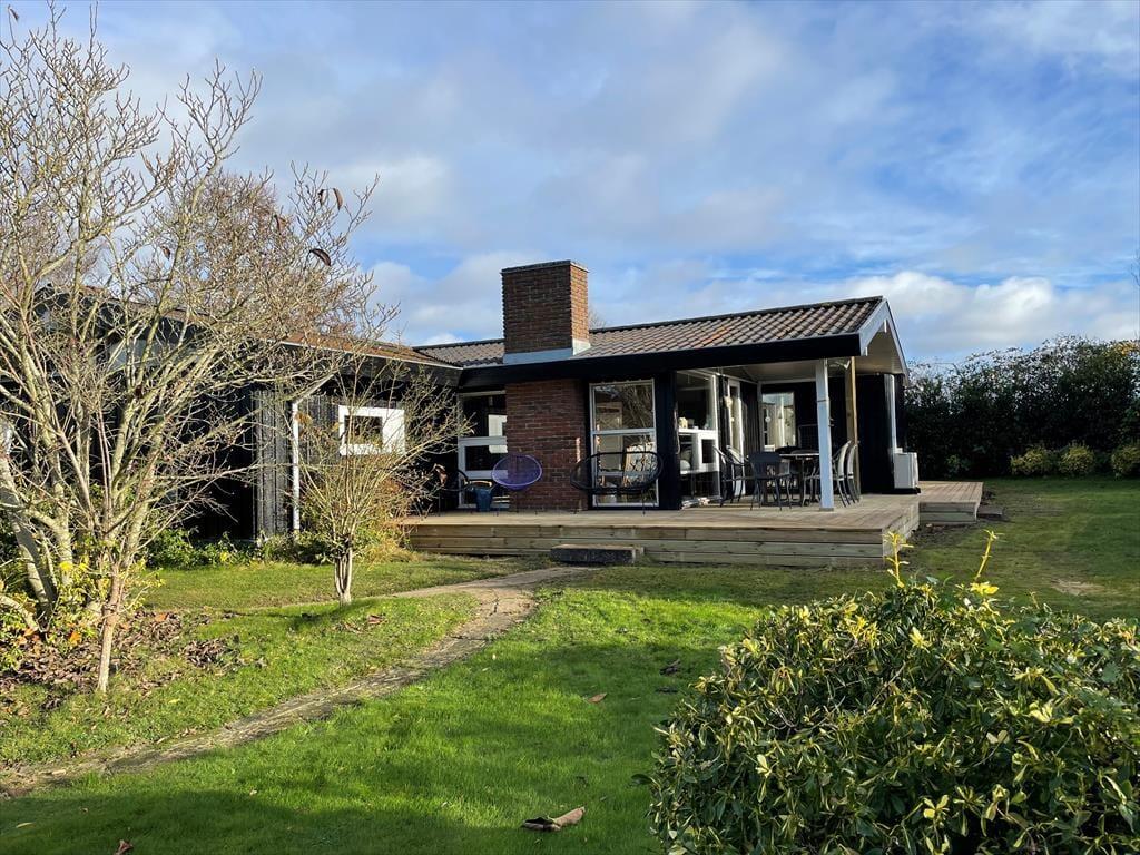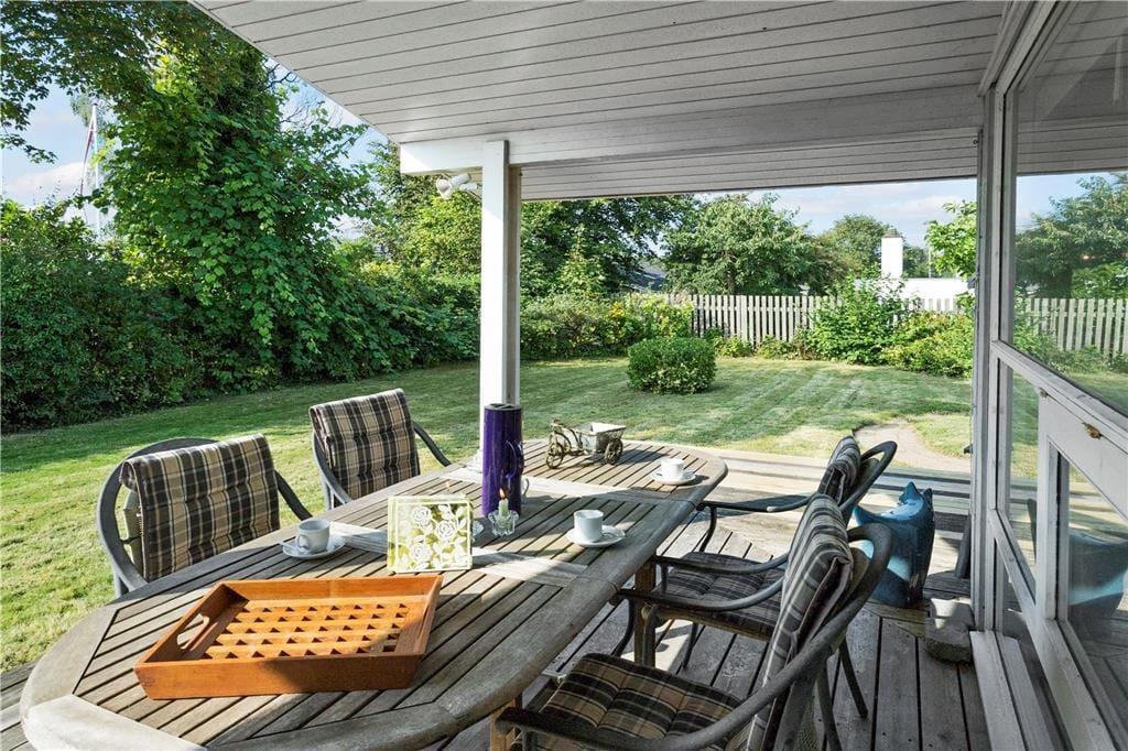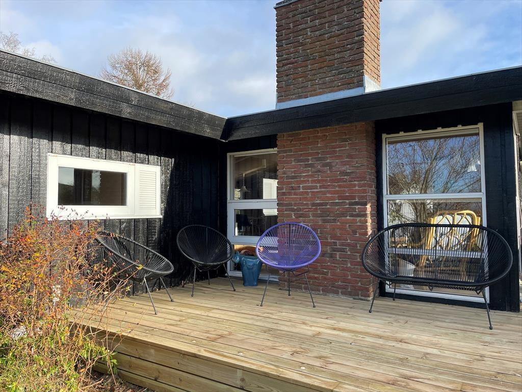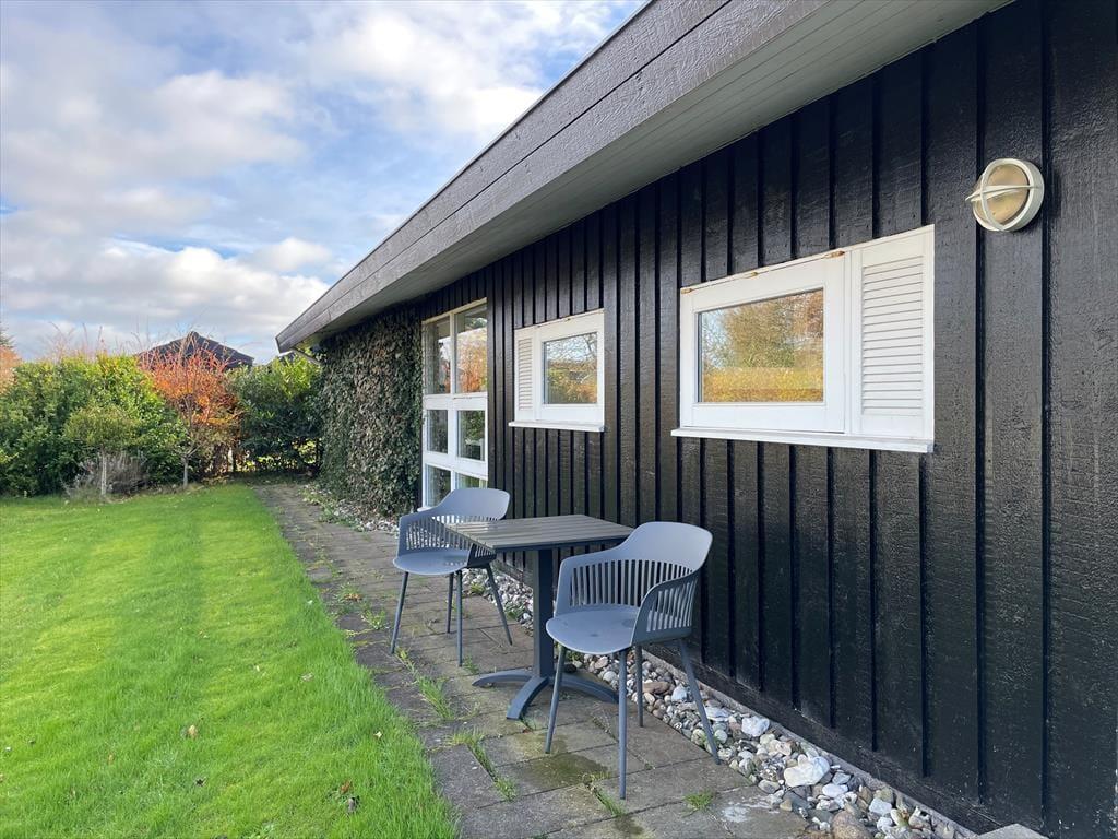 Udenfor venter et skønt terrassemiljø, hvor du kan trække frisk luft og nyde naturens lyde omkring dig. Terrassen inviterer til afslappede dage i solen og hyggelige aftener under åben himmel, hvor duften af grill og lyden af latter fylder luften. Her kan du spise dine måltider udendørs, spille et spil eller blot lade tankerne flyve, mens du mærker vinden fra havet. Dagen får lov at flyde i et roligt tempo fra de første morgentimer til den sidste solstråle forsvinder bag trætoppene.
