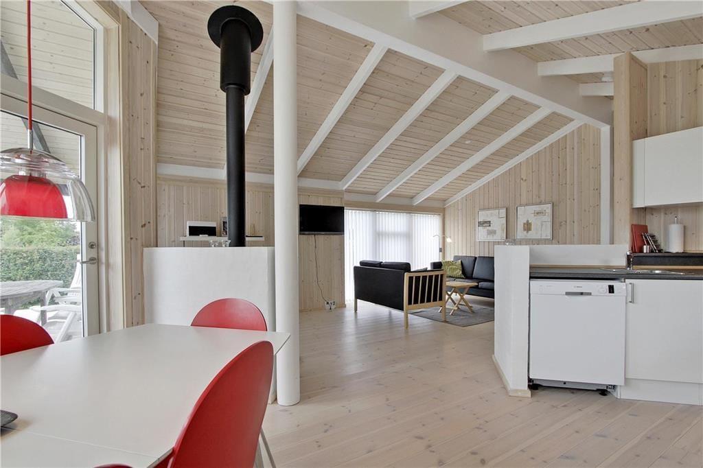 Udelivet får en helt særlig plads her. Den store åbne have giver plads til både leg og afslapning, hvilket gør huset oplagt til børnefamilier. Her kan børnene trygt boltre sig på græsset, mens de voksne finder ro på den rummelige terrasse. Når vejret er godt, er terrassen et naturligt samlingspunkt, hvor du kan starte dagen med kaffe i morgensolen, grille til frokost eller samle familien til lange aftener under åben himmel. Med kun 300 meter til stranden er det oplagt at tage håndklædet under armen og gå ned til vandet. Ajstrup Strand byder på en børnevenlig sandstrand med lavt vand og Blåt Flag, hvilket giver trygge rammer for badeture og leg i sandet. Kombinationen af hav, have og terrasse gør sommerhuset ideelt for alle, der drømmer om en ferie, hvor naturen er tæt på.