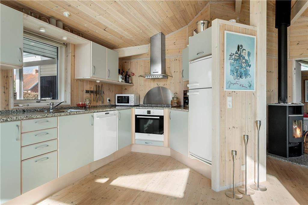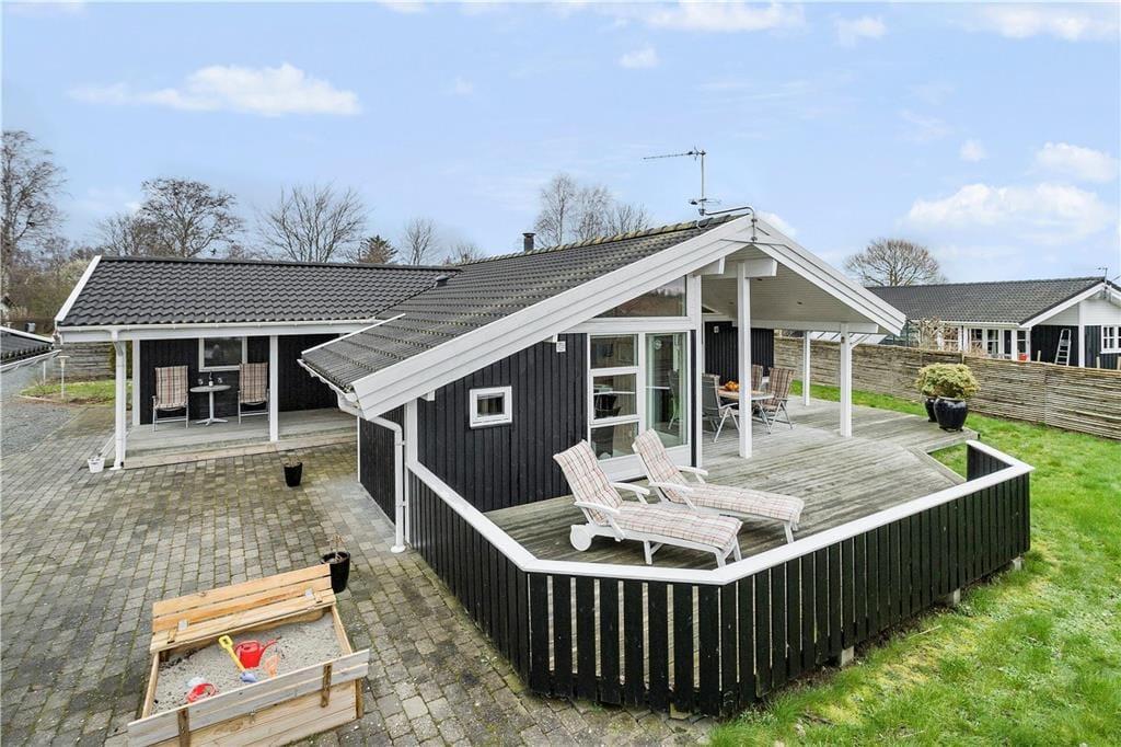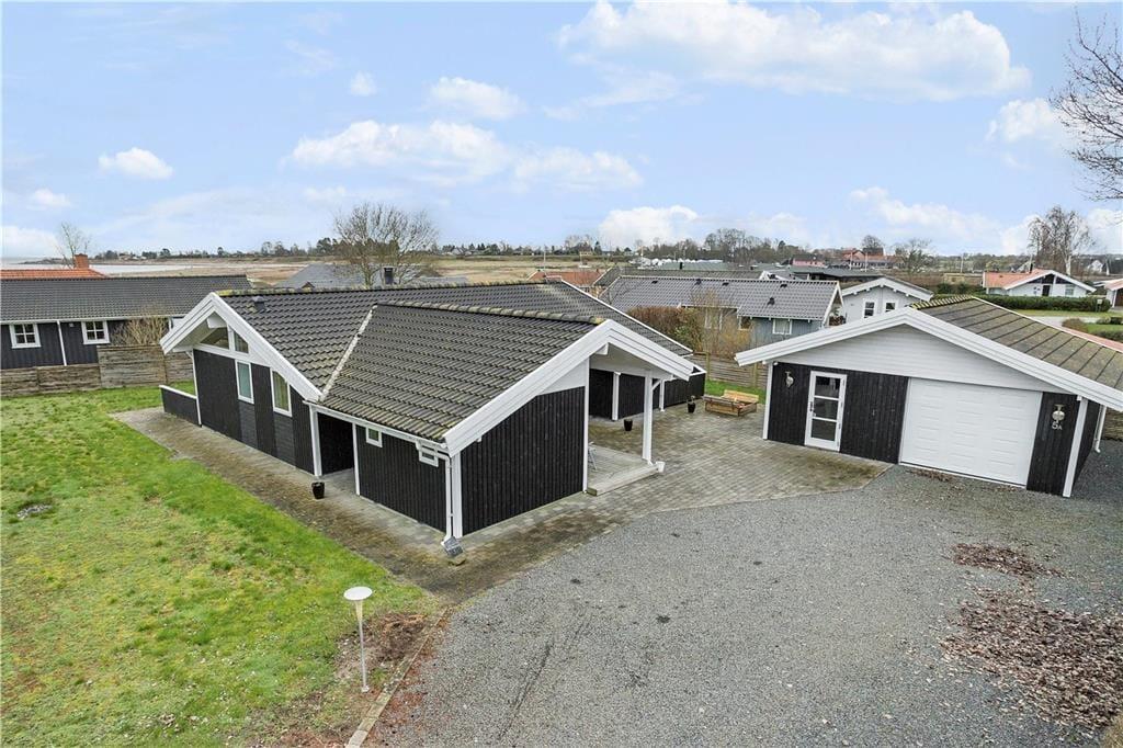 Udenfor finder du en dejlig have, der skaber trygge rammer for både børn og voksne. Haven indbyder til leg og afslapning, mens terrassen langs sommerhuset giver mange muligheder for at nyde udelivet hele dagen. Her kan du starte morgenen med en kop kaffe i solen, spise frokost i læ og afslutte dagen med grill og hygge under åben himmel. Med kun 100 meter til stranden er det oplagt at tage håndklædet over skulderen og gå ned til vandet for en frisk dukkert. Når du kommer tilbage, kan du fortsætte ferien på terrassen, hvor roen og nærværet får lov til at fylde. Haven og terrassen bliver hurtigt familiens naturlige samlingssted.