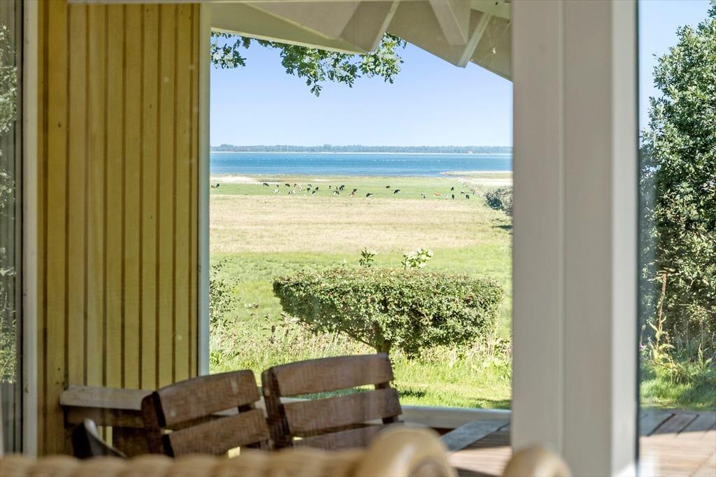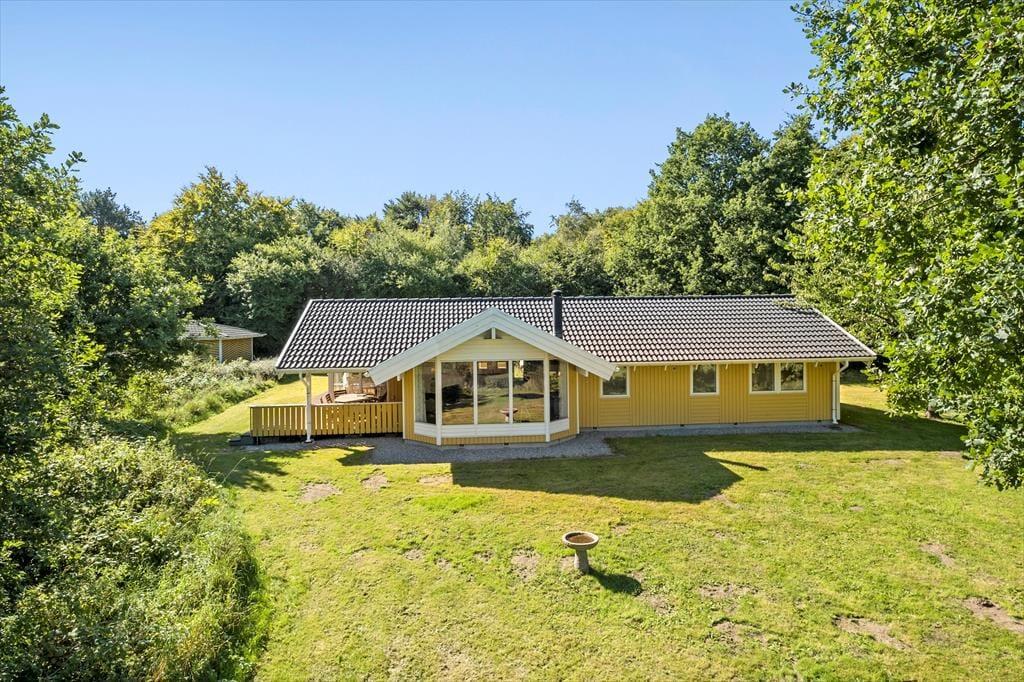 Sommerhuset lyser op med sin gule træfacade i det smukke fjordlandskab, der byder på skovklædte arealer og flade strandenge med græssende køer. Takket være de store stuevinduer kan I nyde synet af naturen, selv når I slapper af i sofaafdelingen – eventuelt med ild i brændeovnen, hvis det er køligt udenfor. Spisepladsen er praktisk placeret nær det åbne og veludstyrede køkken, og der er også en alkove, der indbyder til en middagslur eller en tilbagelænet stund med avisen efter frokosten. I entréen er der en vaskemaskine, mens begge badeværelser er med bruser og gulvvarme. På de fire soveværelser er der plads til, at syv personer kan sove komfortabelt.