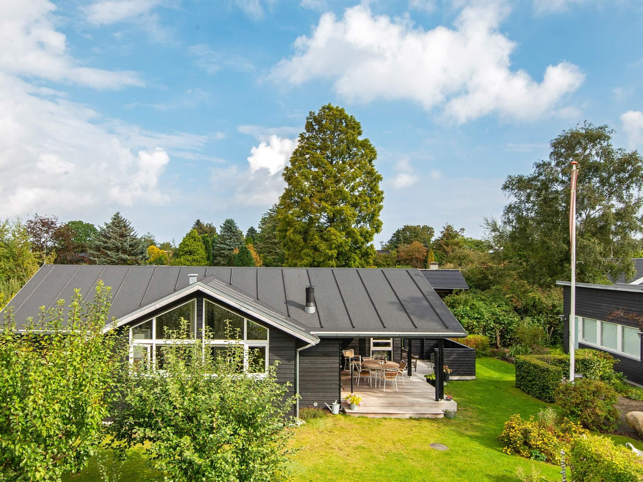 Udenfor vil gæsterne nyde en privat, afsondret grund omgivet af natur, ideel til afslapning og leg. Flere terrasser, både åbne og overdækkede, giver steder at nyde solrige morgener eller beskyttede aftener udendørs. Boligen har privat parkering til flere biler og ligger kun 350 meter fra børnevenlig badestrand med mole og Blå Flag for rent, sikkert badevand.