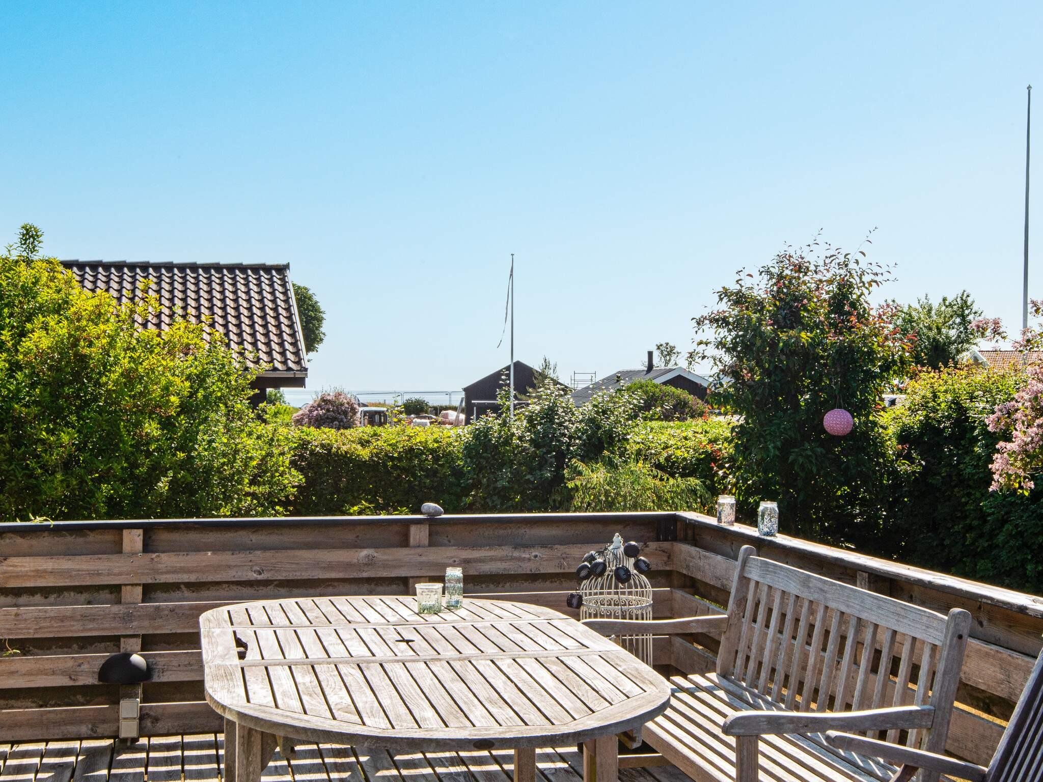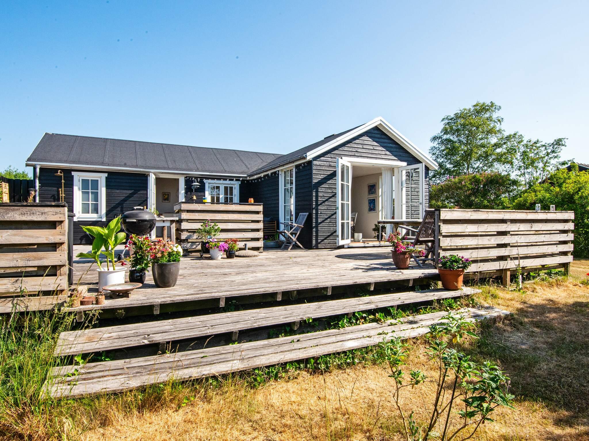 Udenfor er en stor og åben terrasse et perfekt sted at nyde solen, mens børn leger i haven. Til ejendommen hører også bålplads til udendørs aftener og praktisk udendørs bruser med varmt vand på terrassen, ideel efter en dag på stranden.