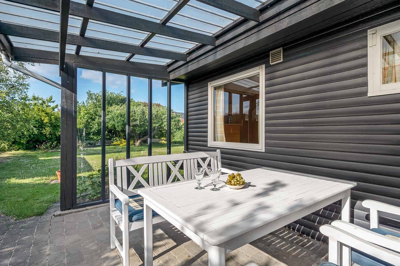 Ferieboligen er beliggende på en 631 m² stor havegrund. Der er 75 m til havet. Nærmeste forretning er beliggende i en afstand af 1500 m. Desuden er der 25 m² overdækket terrasse. Grill til rådighed. Parkering ved ferieboligen.