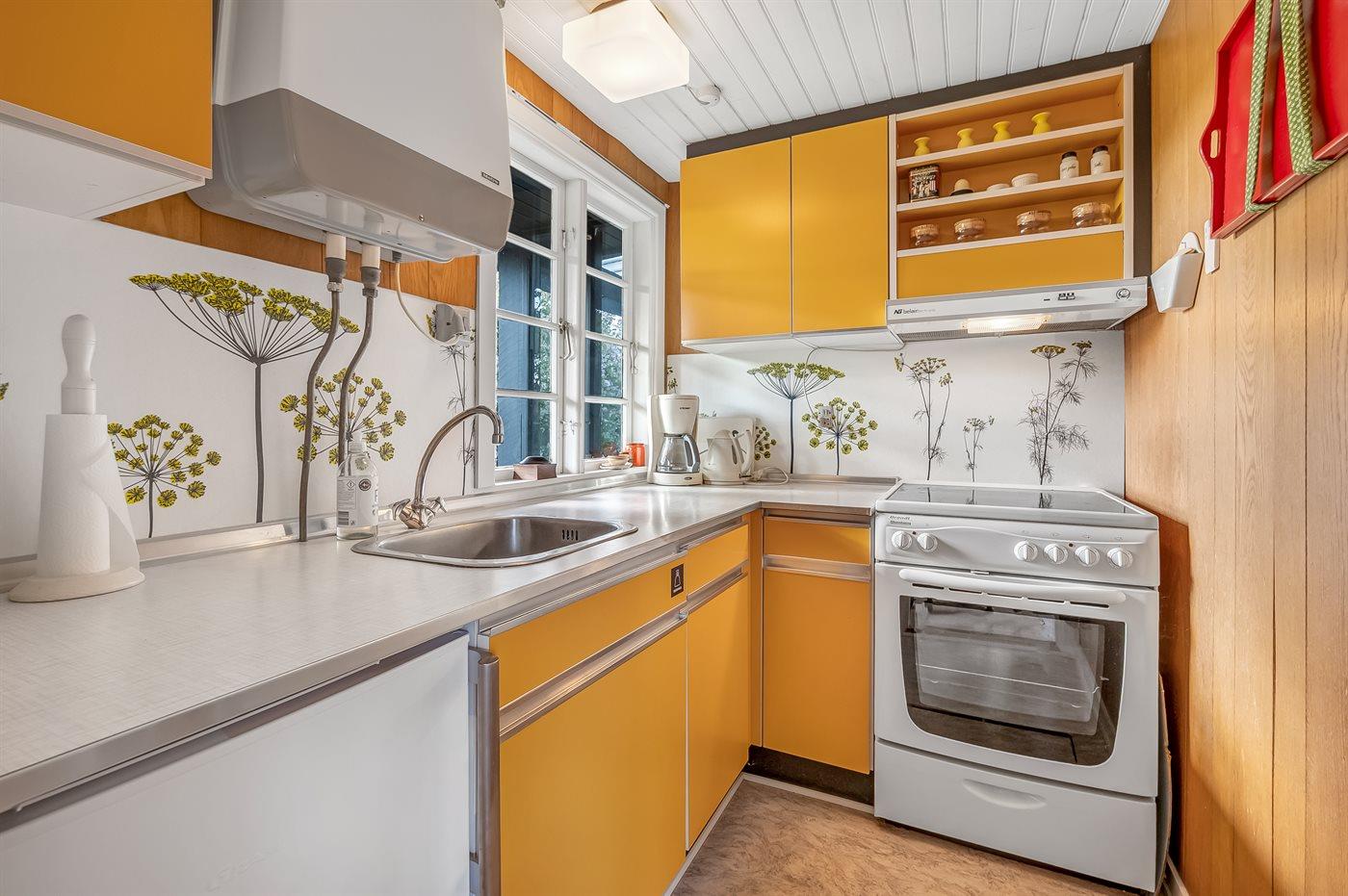 Køkkenet er udstyret med 1 køleskab. Der er 4 keramiske kogeplader, varmluftovn.