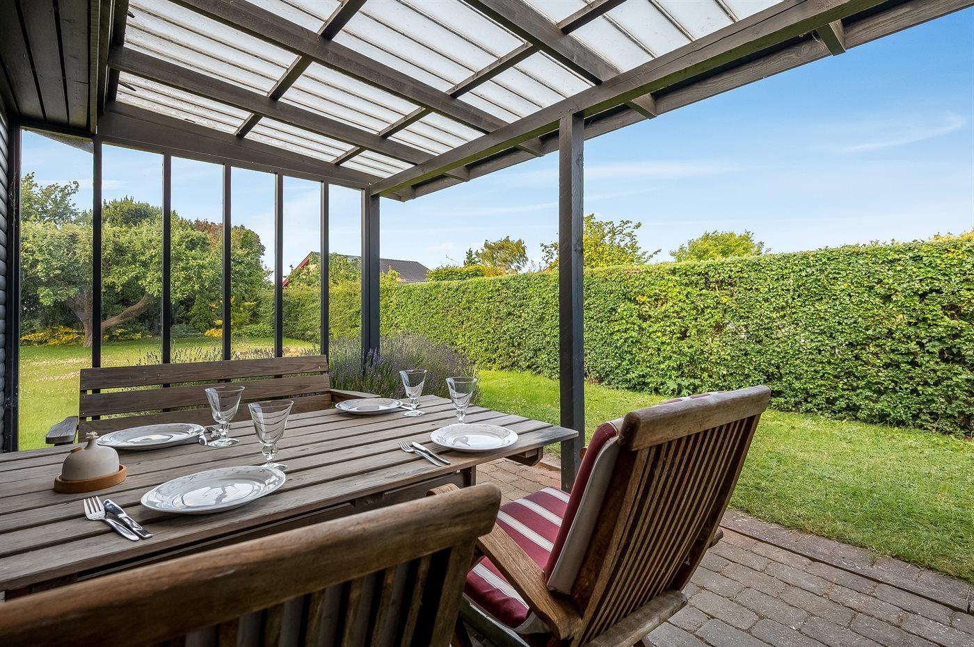 Hyggeligt sommerhus fra 1943 nær børnevenlig strand ved Ajstrup med overdækket terrasse og skøn have.