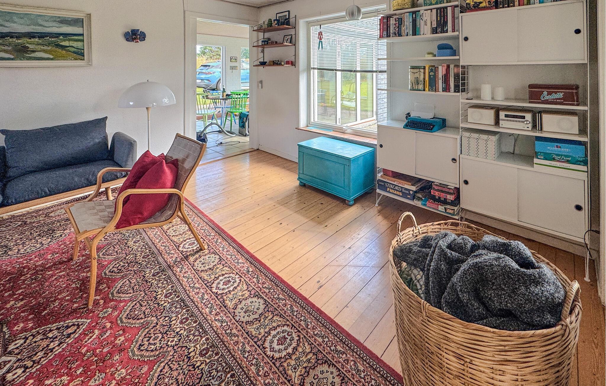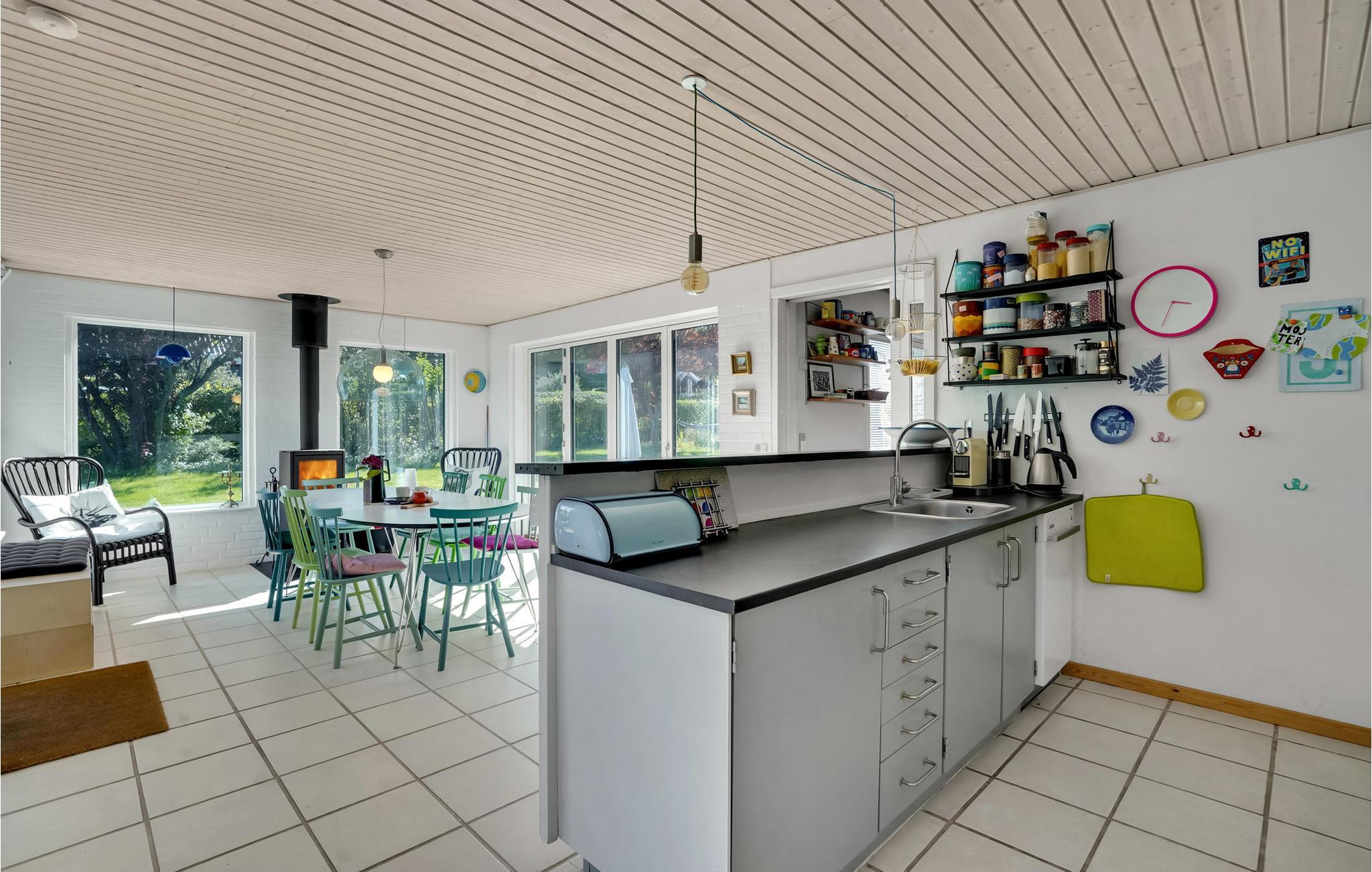 Dette flotte, indbydende feriehus i Ajstrup Strand bliver en skøn ramme om jeres ferie i det østjyske. Her kan I se frem til en skøn bolig fyldt med stil og charme, hvor det er nemt at slappe af. Det store køkken bliver centrum for eftermiddagshyggen, hvor I kan hygge jer med madlavningen, mens børnene tegner eller spiller brætspil rundt om det store spisebord. I vinterhalvåret kan I tænde op i brændeovnen i morgentimerne. Når dagen er forbi, kan I læne jer tilbage i sofaerne.