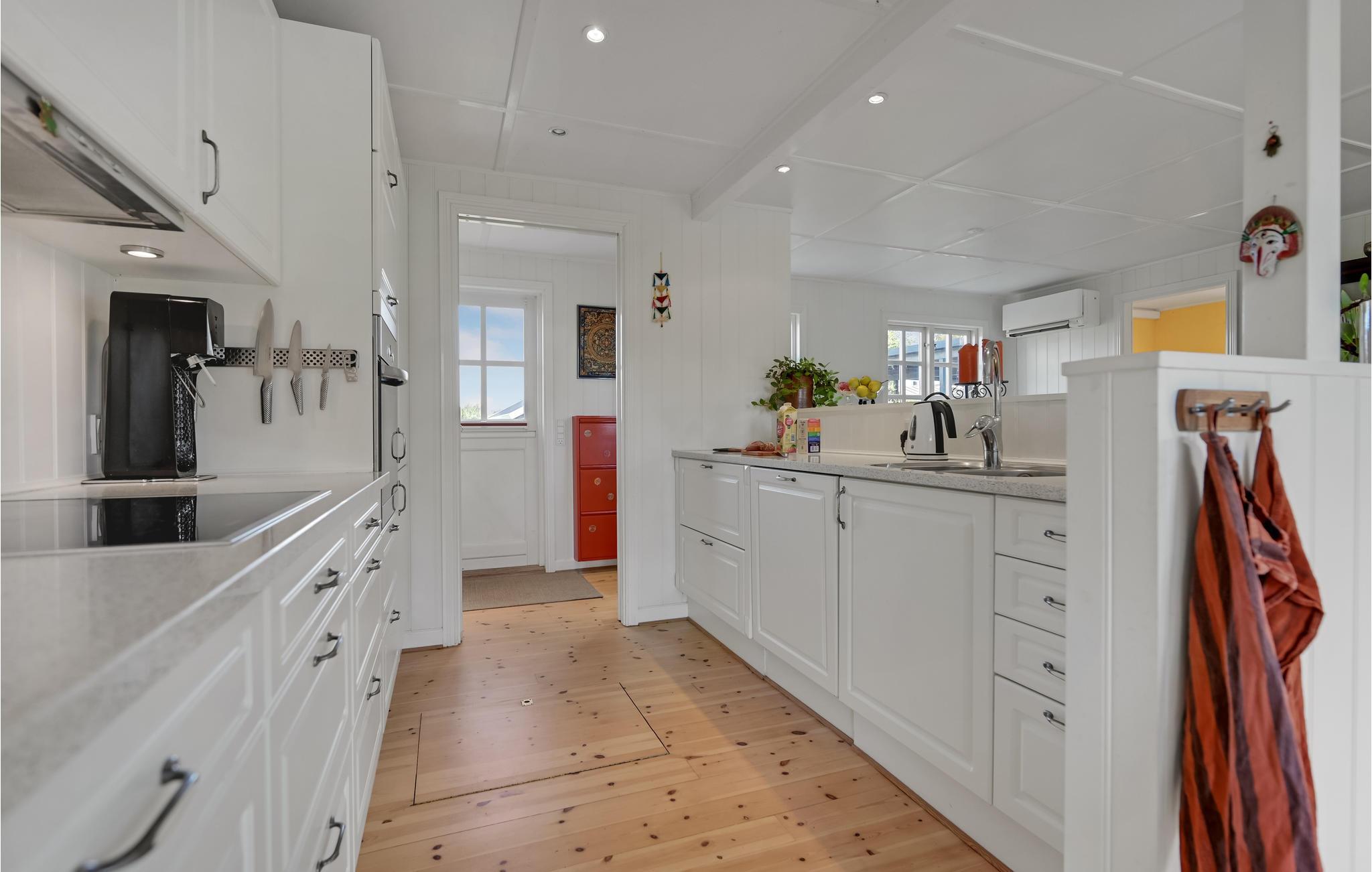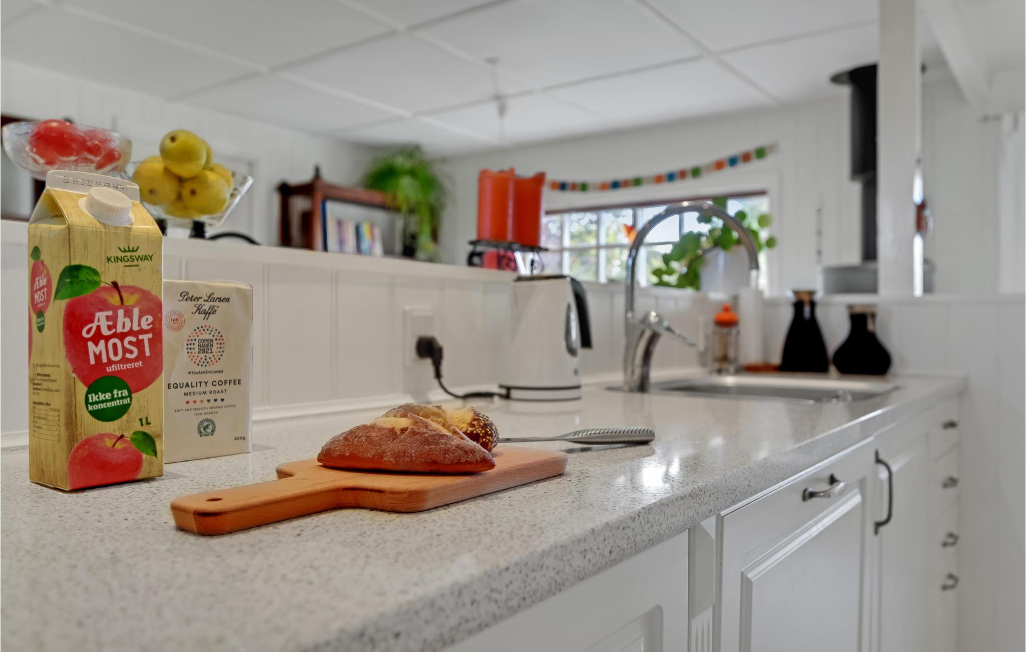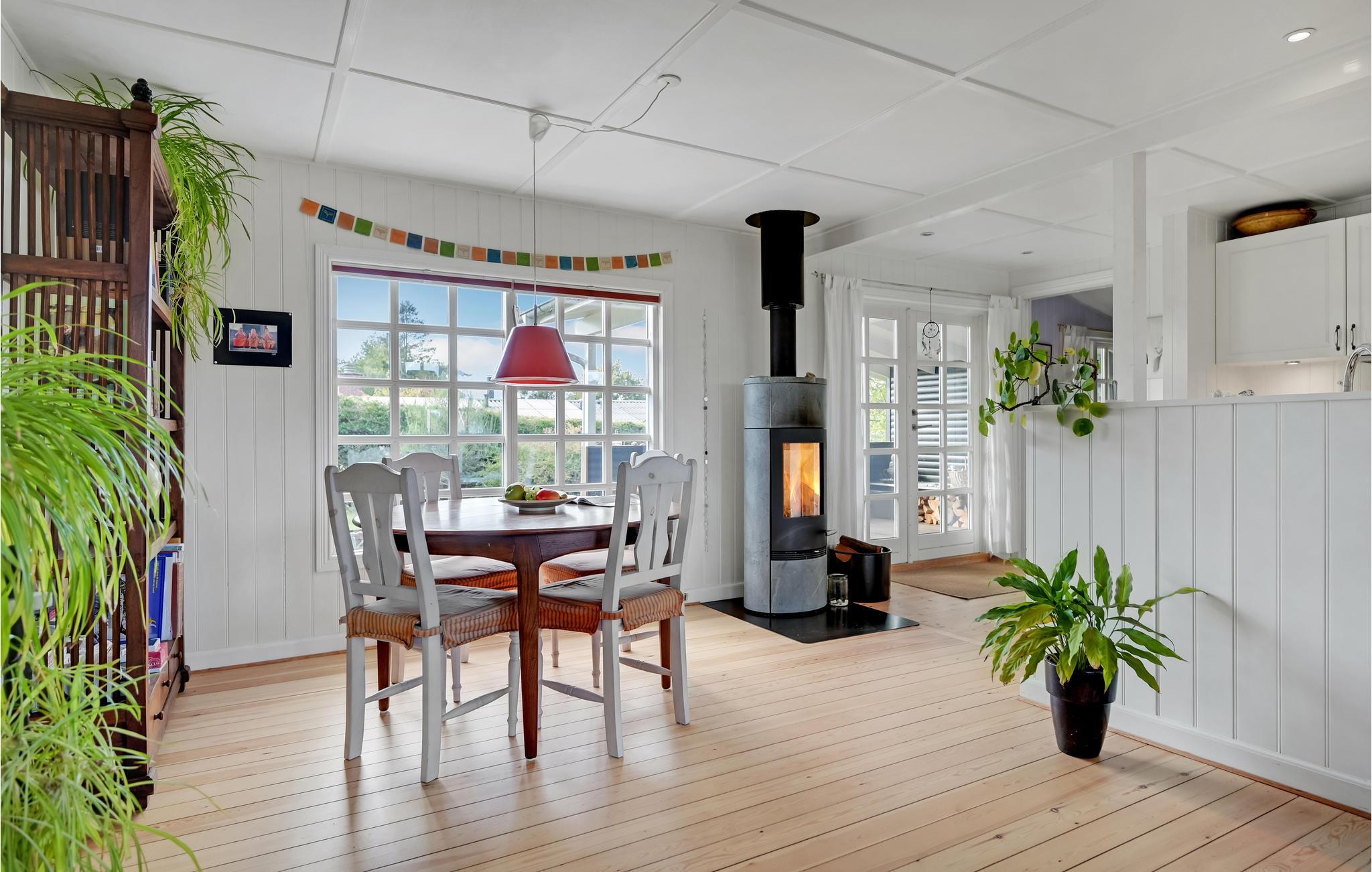 I fredelige omgivelser byder dette vidunderlige feriehus jer velkommen. Indenfor venter jer et lyst og komfortabelt indrettet interiør, som giver en indbydende og hyggelig atmosfære. Tilbring hyggelige timer med familie eller venner med brætspil, eller sæt jer til rette foran brændeovnen og dyk ned i jeres medbragte ferielitteratur.