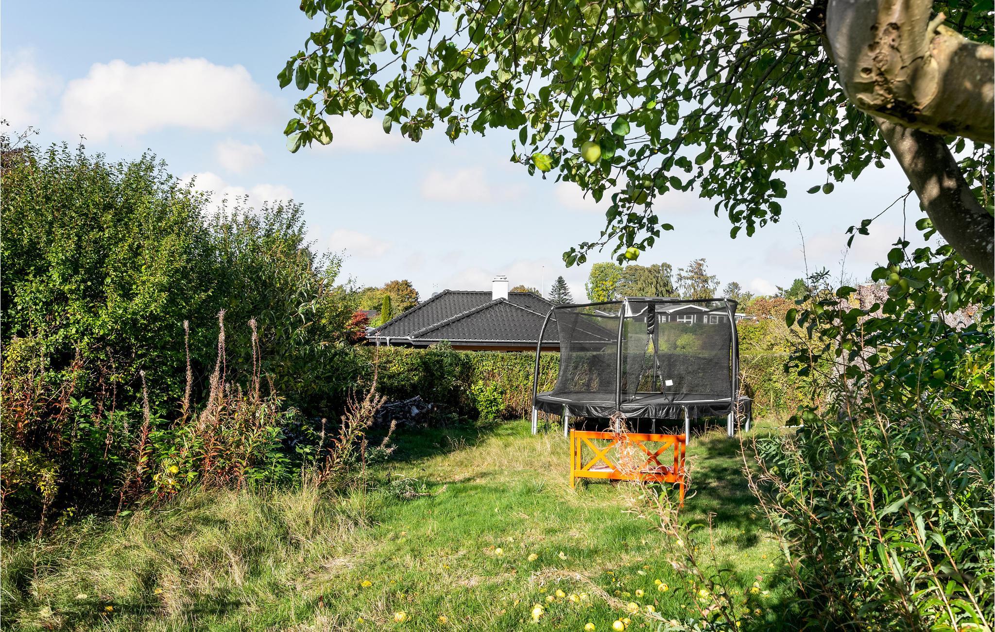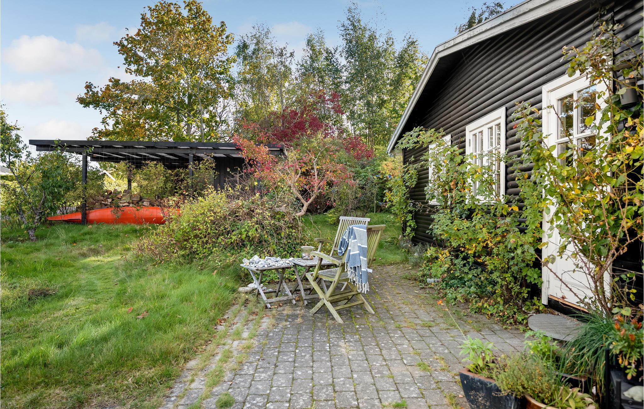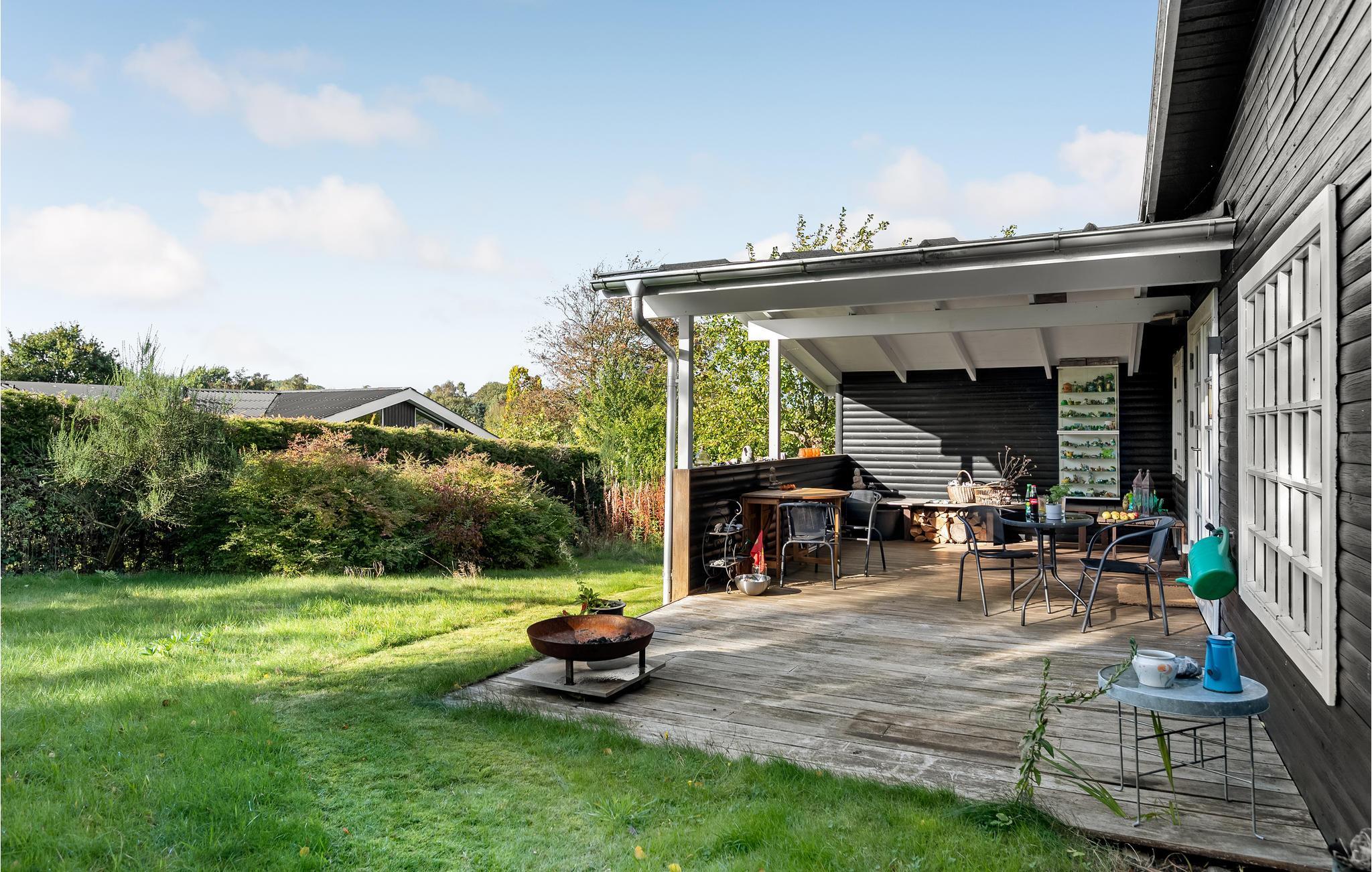 Haven byder på flere hyggelige hjørner, der indbyder til ophold. Lad børnene løbe rundt og lege, mens I slapper af i havemøblerne. Den overdækkede terrasse er et perfekt sted til socialt samvær udendørs, selv hvid der skulle falde et par dråber regn.