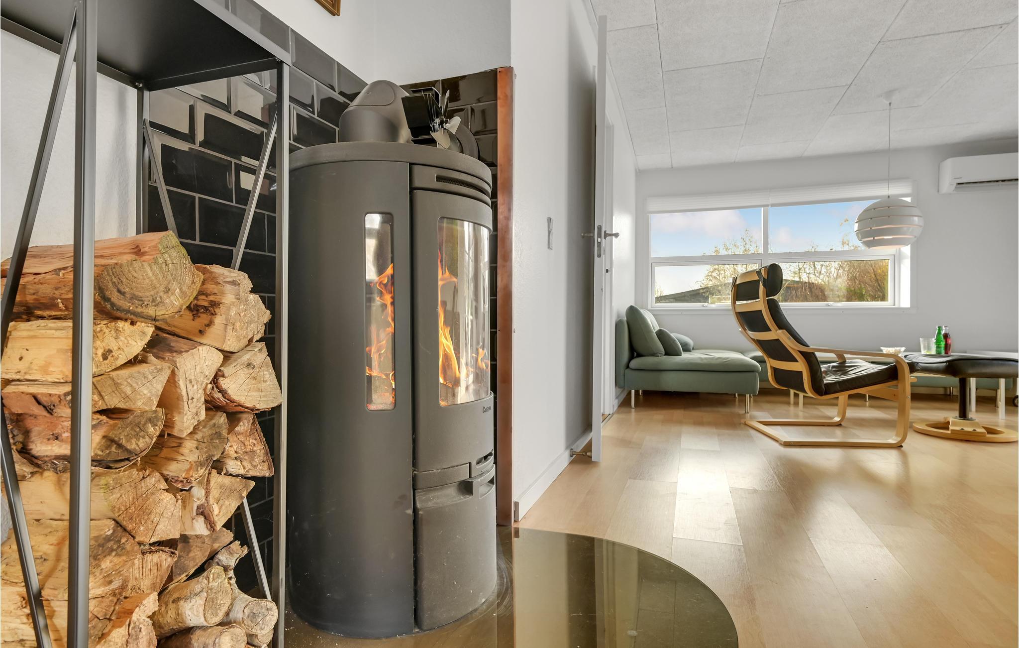 Der er lagt op til en dejlig ferie, hvor I kan få jeres base i dette attraktive sommerhus, som ligger i Ajstrup Strand. Boligens flotte moderne løsninger og de store lysindfald giver jer nogle skønne rammer til at lave mad, slappe af og spille brætspil efter en lang dag på farten. Hvis vejret er lidt køligt, er det hyggeligt med ild i brændeovnen.