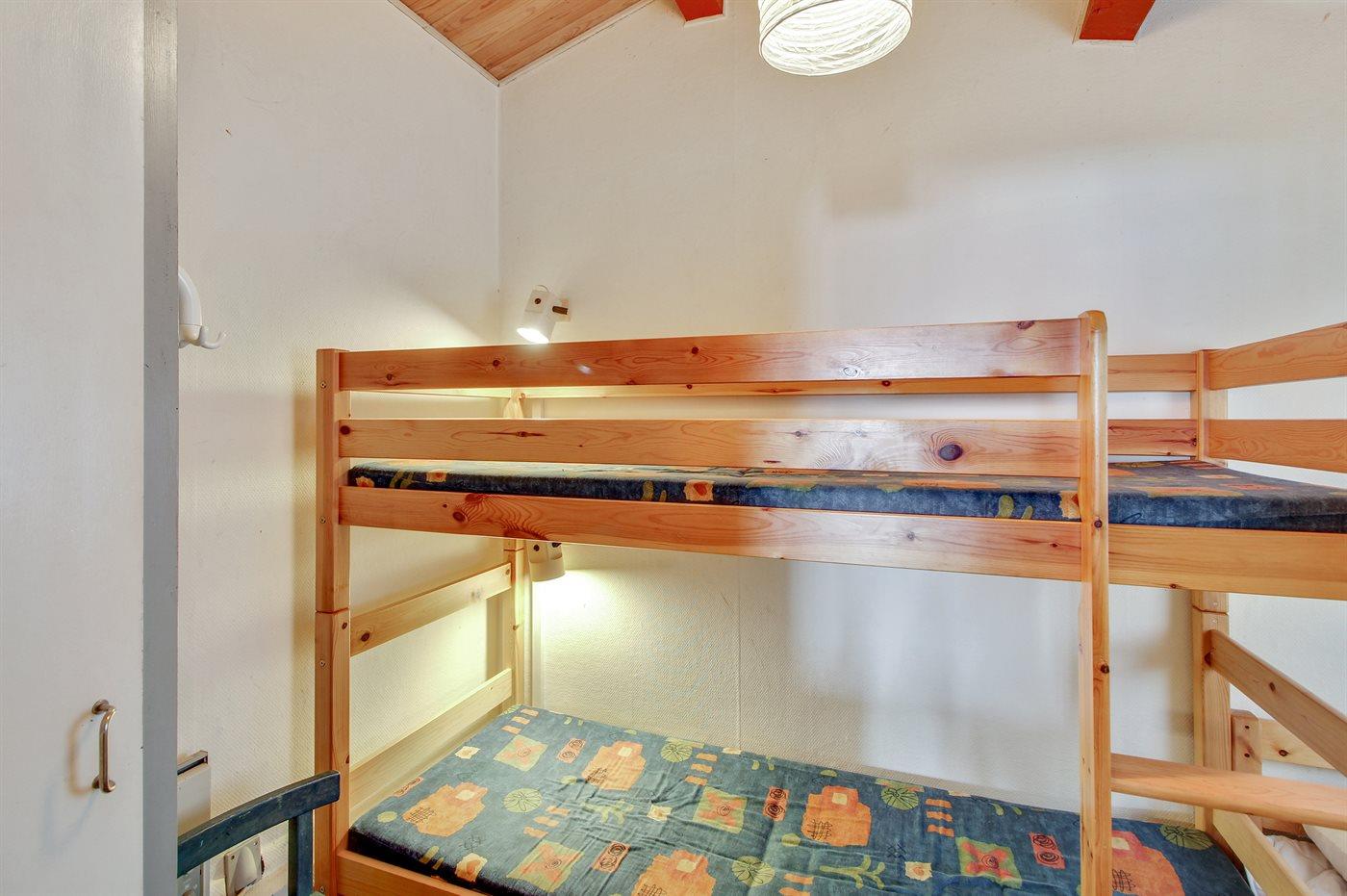 Der er i alt 2 soveværelser. Sovepladserne fordeler sig på: 2 sovepladser i dobbeltseng. 1 soveplads i enkeltseng. 2 sovepladser i køjeseng.
