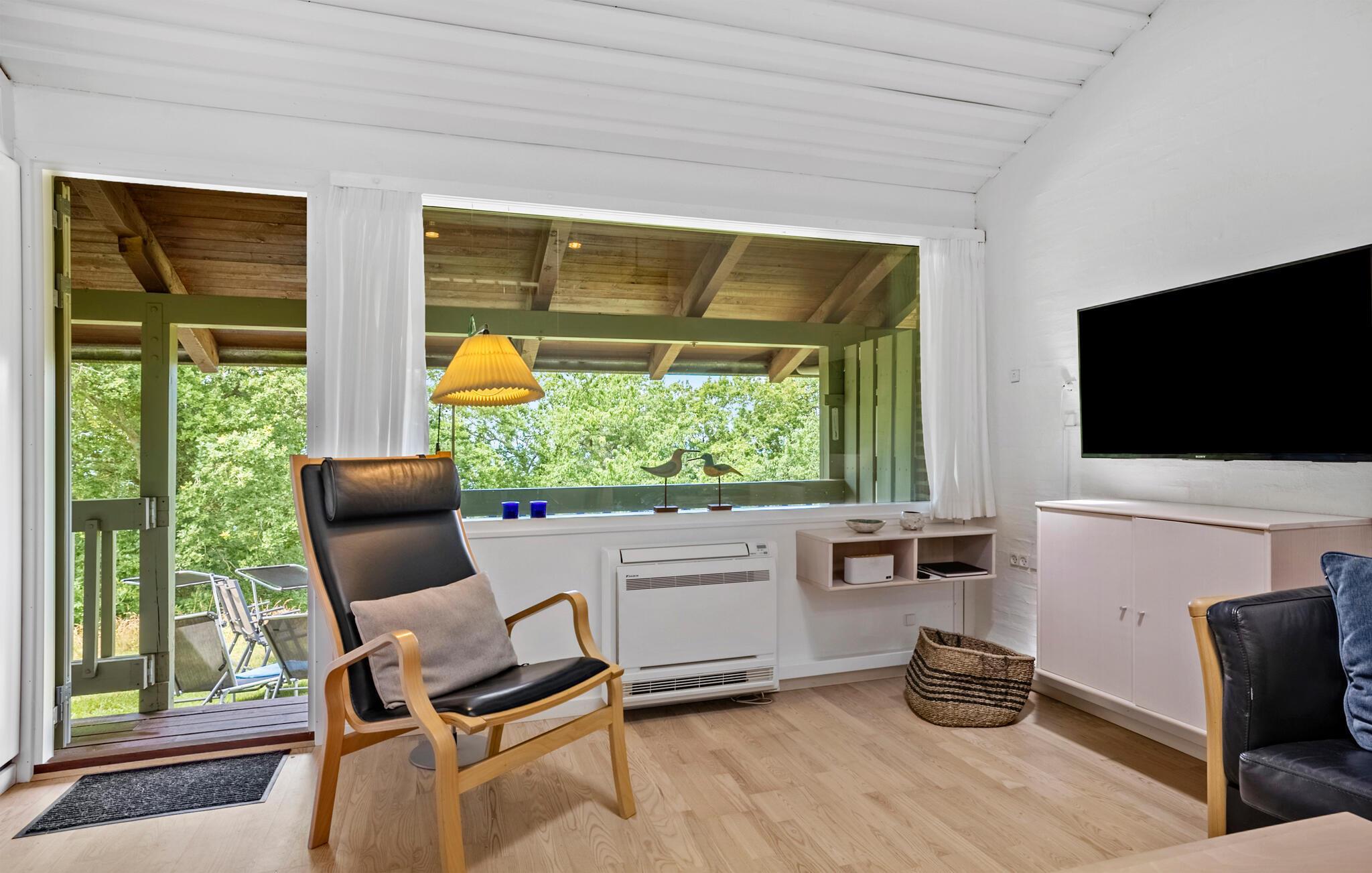 Glæd jer til en afslappende ferie i dette feriehus med havudsigt fra terrassen.