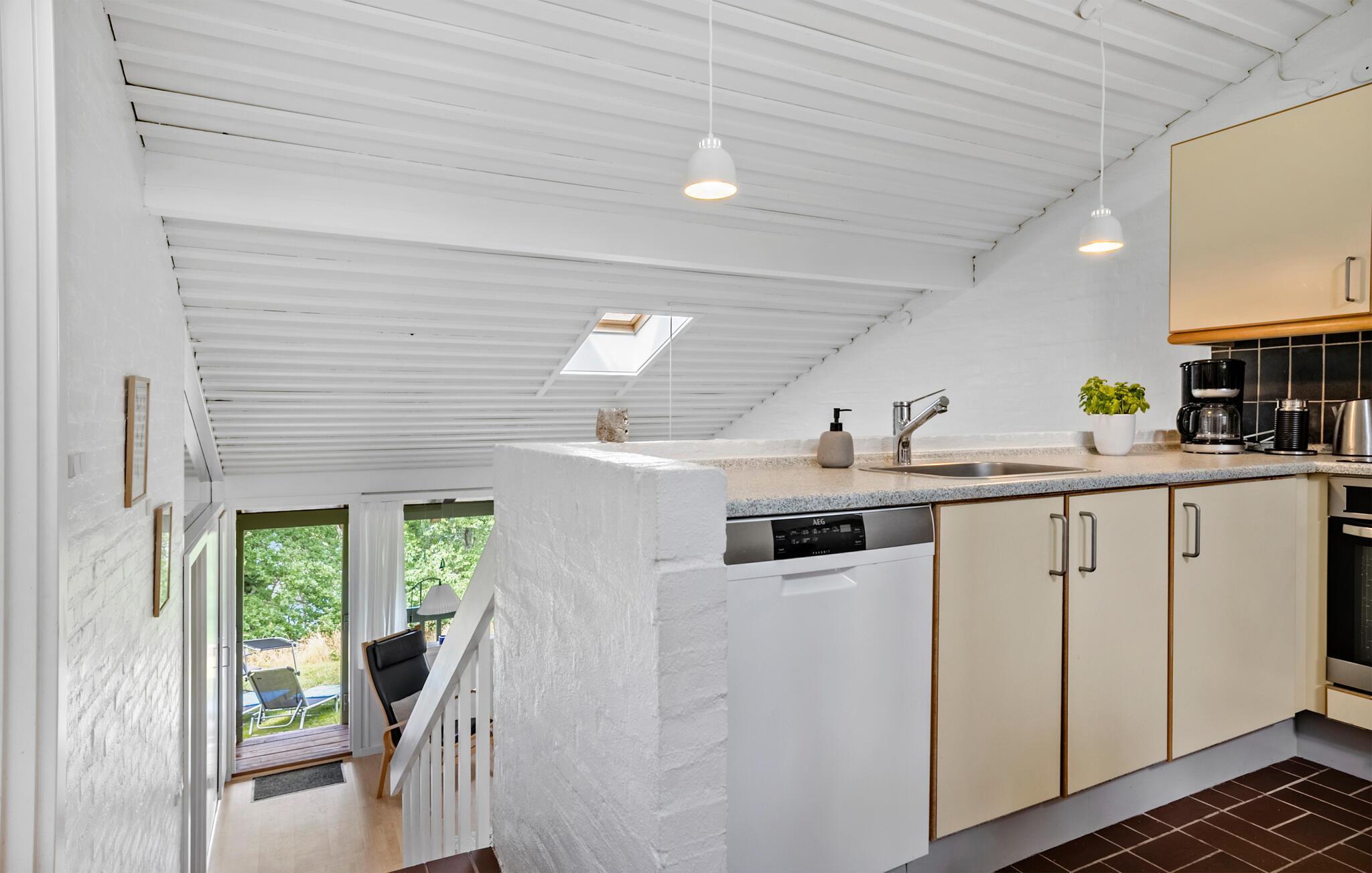 Dette feriehus i nordisk stil ligger på en naturgrund i første række til vandet og tæt på nogle af Bornholms mest populære destinationer. Stuen er husets naturlige mødested. Her kan I tilbringe aftenerne. Se tv, læs en god bog eller læn jer tilbage i sofaen. I det åbne køkken med spiseplads kan I tilberede dagens måltider sammen.