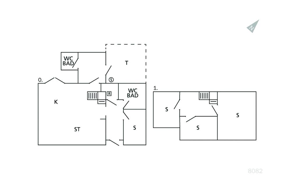 Soveværelse (nr. 1) - 2 Sovepladser. (Enkeltseng(e)).
