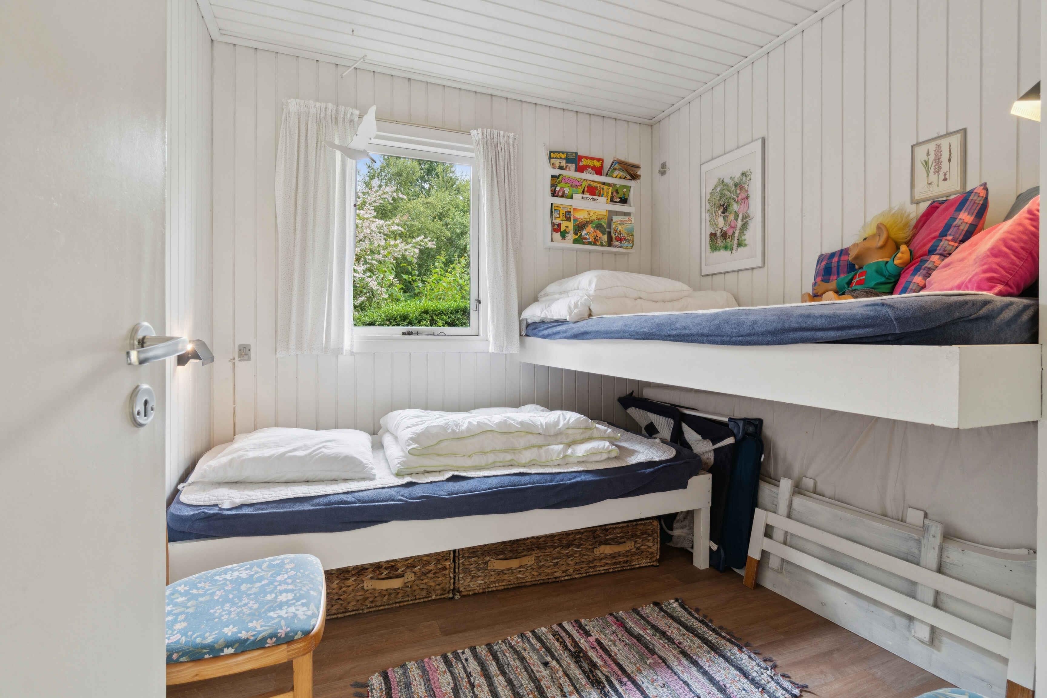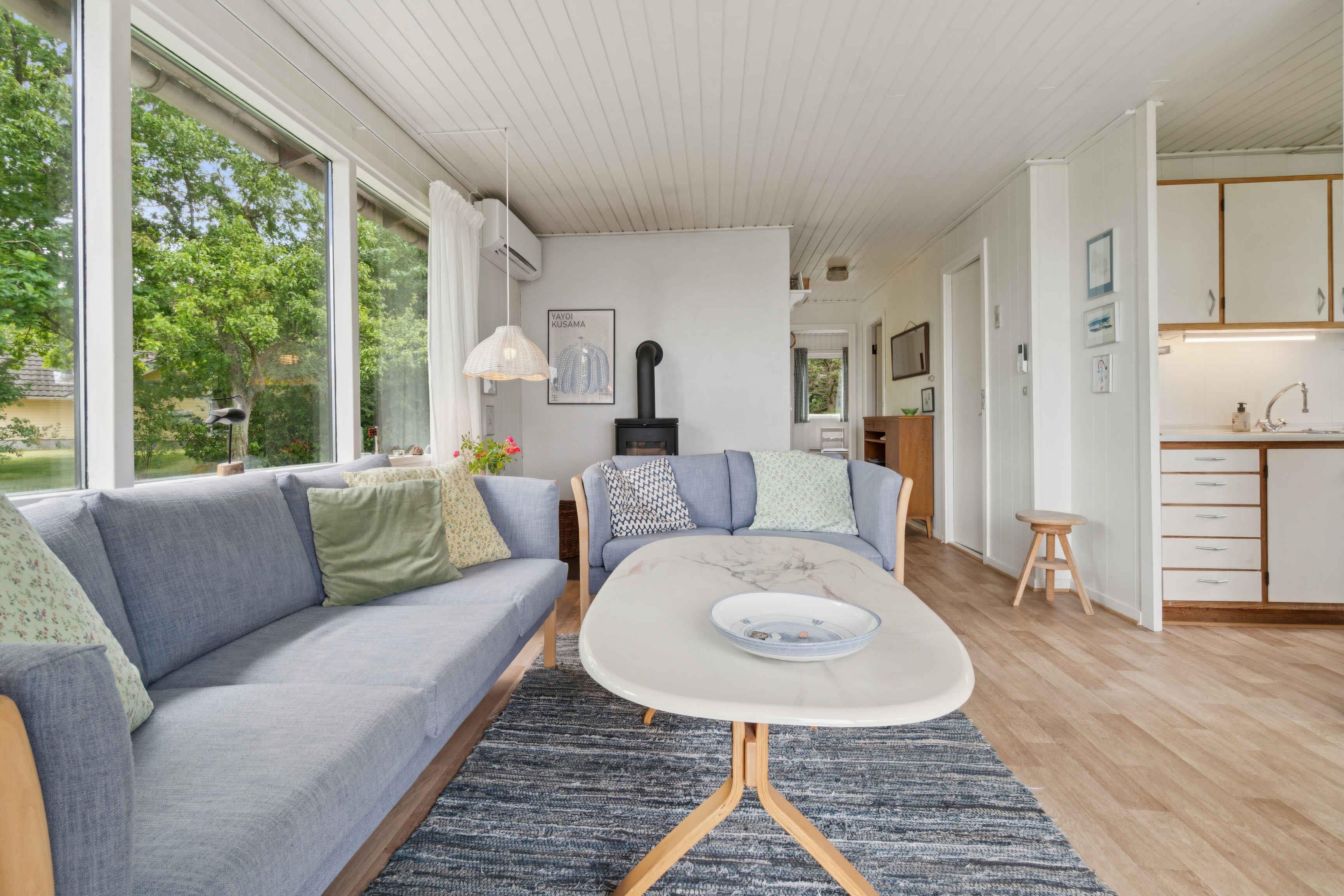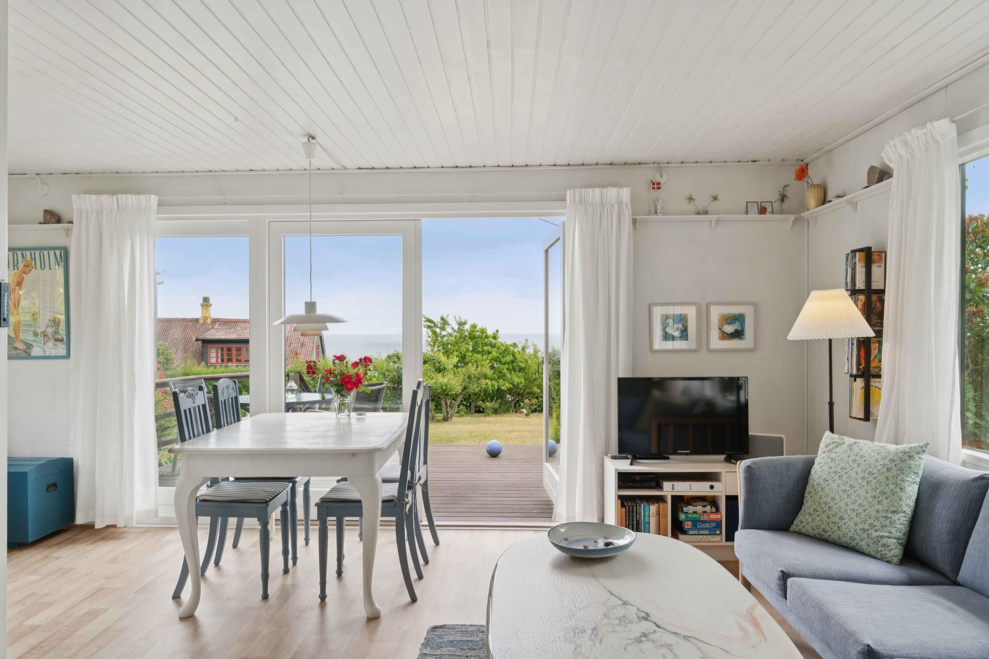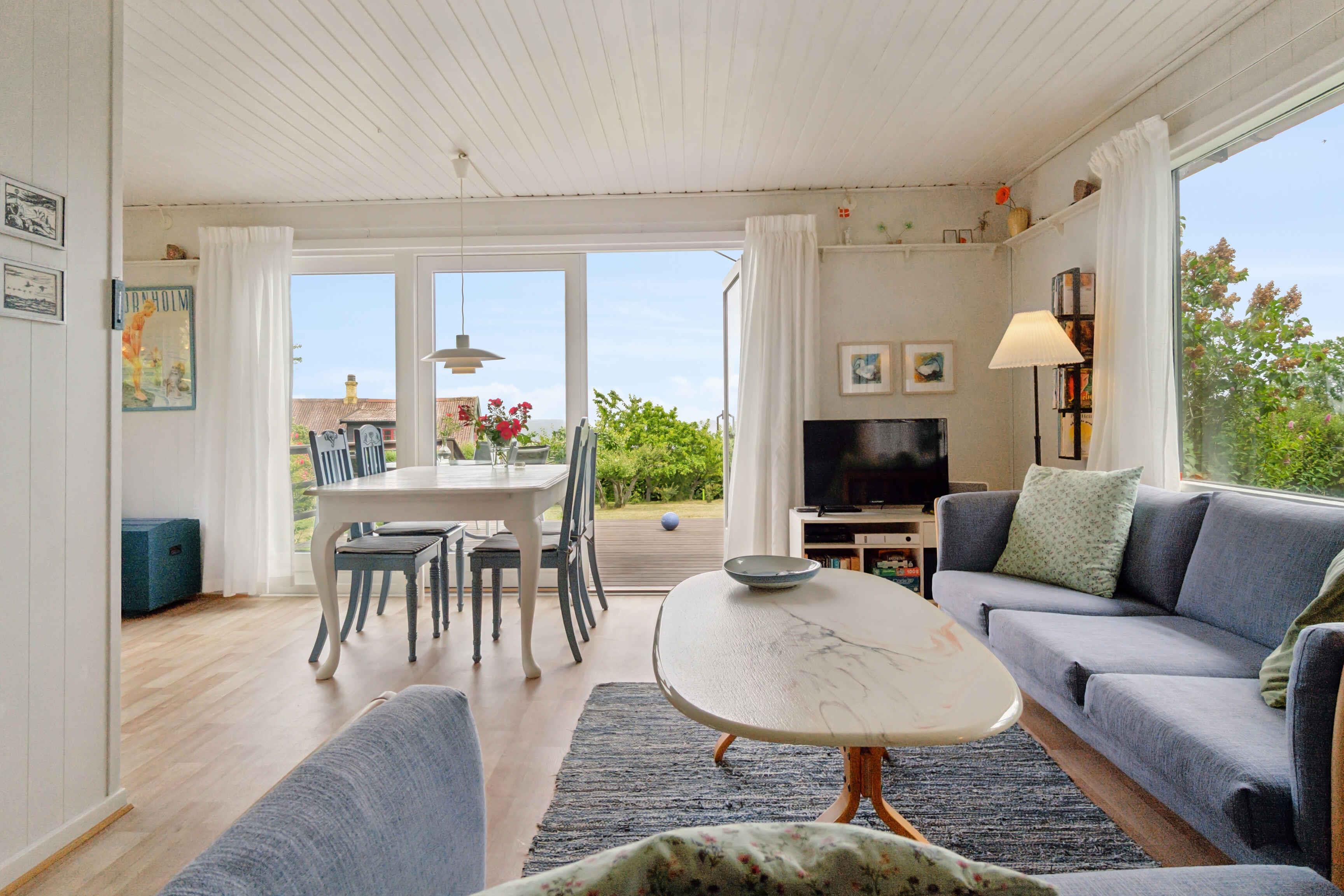 Dejligt sommerhus med flot havudsigt og en rolig beliggenhed, kun 500 meter fra en god sandstrand og smukke klipper. Huset fremstår pænt og indbydende med en rigtig dejlig stue, hvor I kan tilbringe de lange aftener med kortspil og snacks. I kan også glæde jer til husets skønne terrasser, hvor der er havemøbler og grill. På den ene terrasse kan I sidde i skygge, og så kan børnene løbe direkte ned i en stor, frodig have med en gynge, hvor de kan have det sjovt med at skubbe hinanden. I gåafstand finder I restauranter og en strandkiosk. I Allinge findes cykeludlejning. Nærmeste indkøb findes i Tejn. Sandkås har status som et af Bornholms ældste turistområder. Her kan I fornøje jer med lange dage på stranden eller snøre vandreskoene og begive jer ud på kyststien, som fører jer op til Allinge by. Flot natur omkranser også byen, lige fra den magiske Troldeskov til den imponerende sprækkedal Storedalen. Gastronomien er i top, så forkæl jer selv med alt fra lækre øl til friskbagte fristelser fra Brødre Bageriet. Ønsker I maden serveret, er I ikke langt fra Hotel Abildgård. Allinge er i nyere tid især blevet kendt for det årlige folkemøde, som trækker politikere og presse til fra hele landet. Her kan I vælge mellem en lang række gode spisesteder og et godt butiksliv. Den klipperige natur gør området helt særligt i dansk sammenhæng, så I må ikke snyde jer selv for lange gå- og køreture i området. Sæt jer med et glas vin og nyd en solnedgang ved havnen - det er et syn, som I ikke lige glemmer. Et rigtigt godt hus i et dejligt område - god ferie!