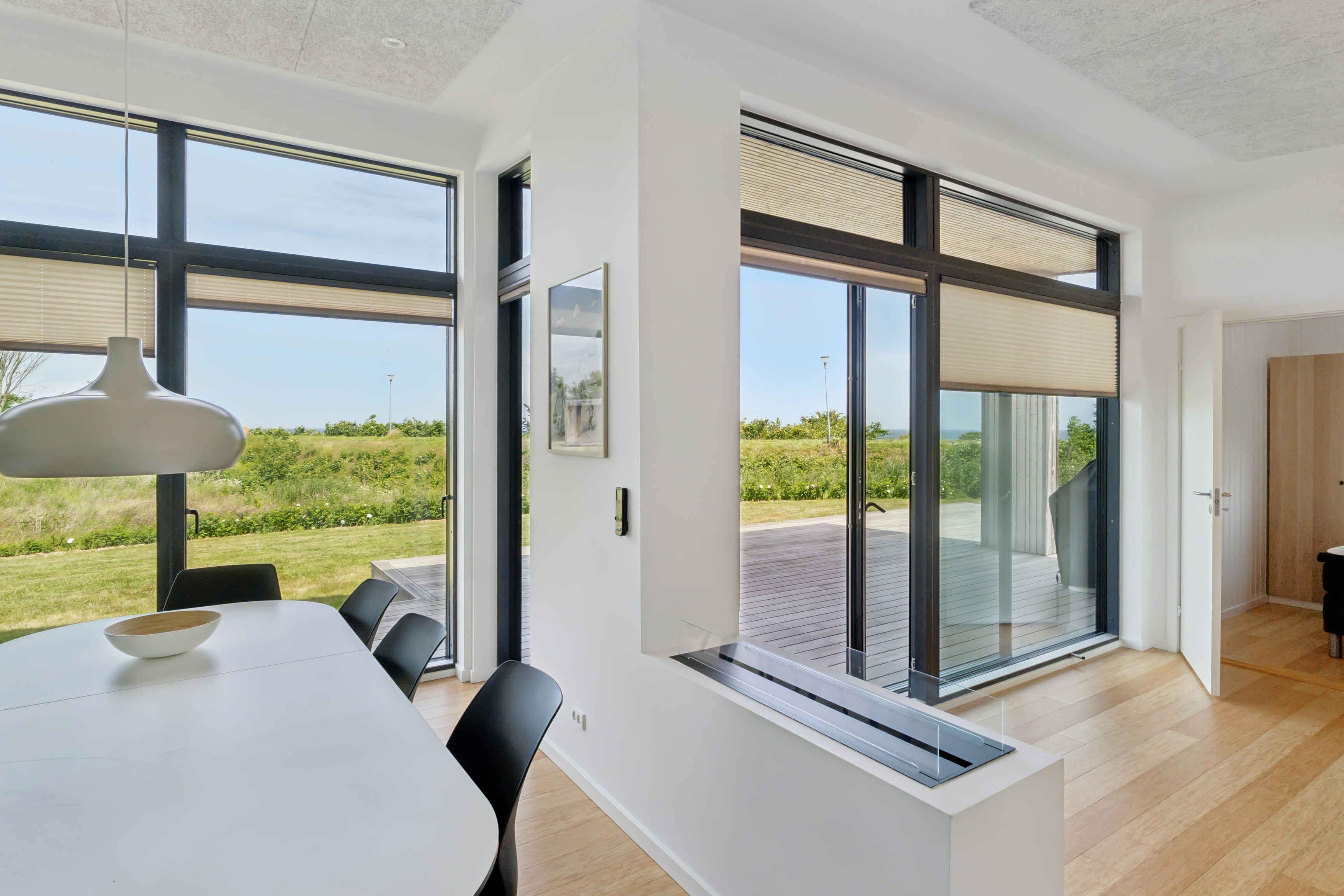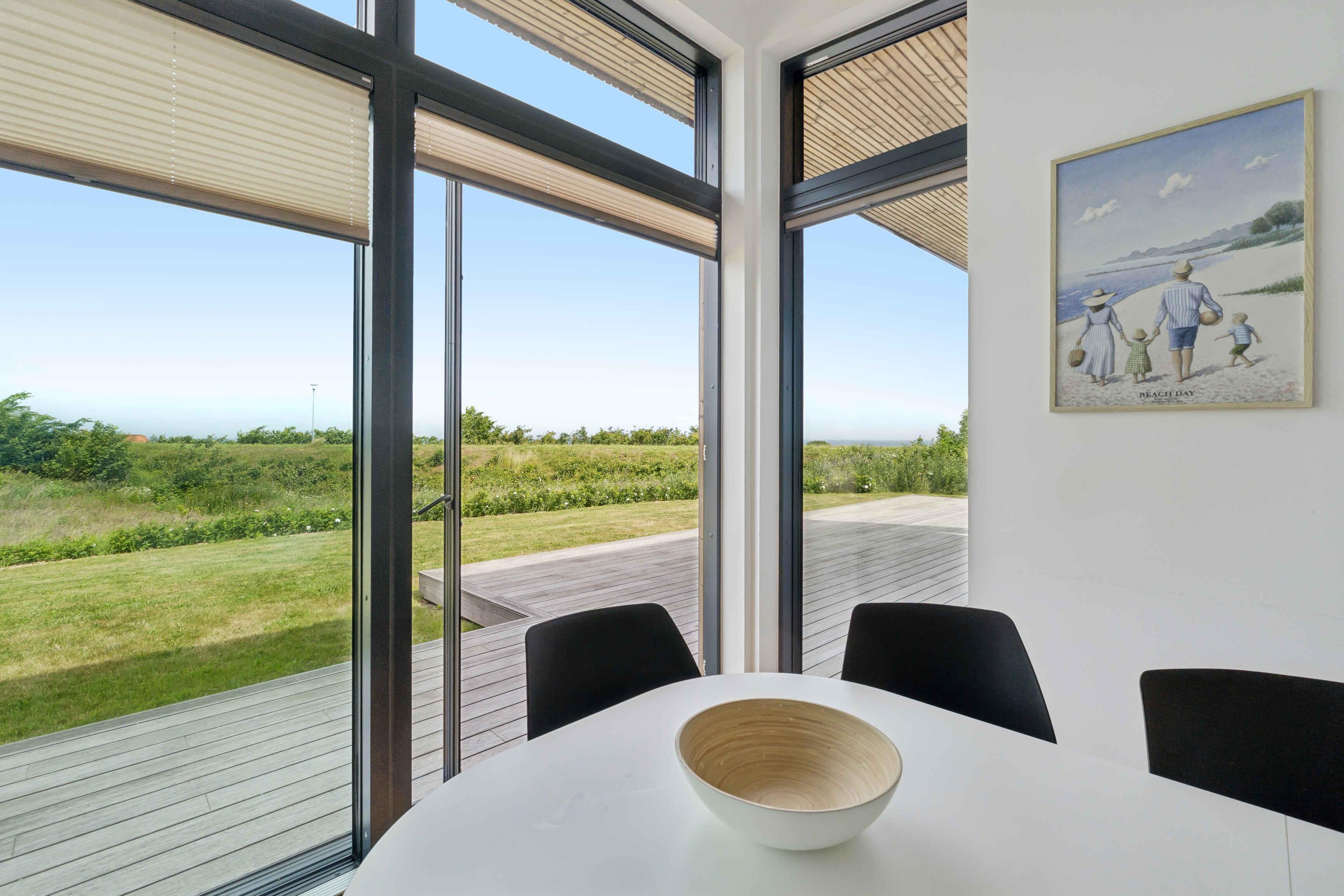 Arkitekttegnet feriehus med havudsigt, bæredygtige materialer, 4 soveværelser, 2 badeværelser, stor terrasse, gasgrill, udebruser og ladestander – tæt på strand og naturoplevelser.