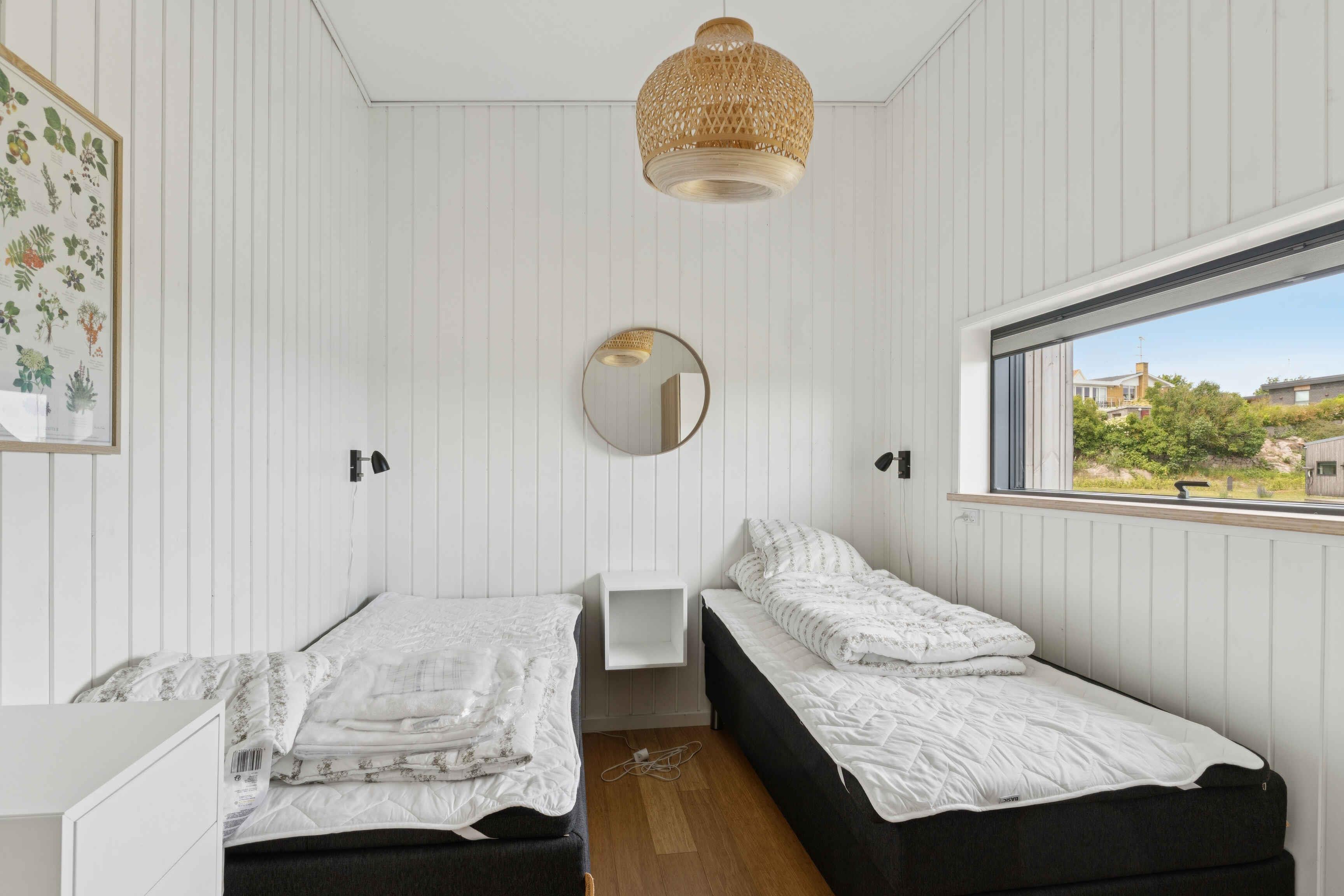 Flot, arkitekttegnet feriehus med havudsigt. Huset ligger nær det smukke naturområde ved Hammeren i charmerende Sandvig og kun 50 meter fra en cykelvej og gangsti, der fører direkte ned i det hyggelige Allinge-Sandvig-område. Huset er lyst og moderne indrettet og med kvalitet og bæredygtigt matriale og garanterer et kvalitetsophold på smukke Nordbornholm. I kommer til at tilbringe mange hyggelige og afslappende stunder i den rummelige opholdsstue med vanddamppejs, hvor I kan flade ud i gode møbler og se film, høre musik, spille spil eller bare hyggesnakke. I det åbne, veludstyrede køkken med tilhørende spiseplads er det en fornøjelse at tilberede lækre feriemåltider. Alle husets fire gode soveværelser og to flotte badeværelser har behagelig gulvvarme. Det samme har bryggerset, hvor I finder en vaskemaskine. Til huset hører en stor, delvist overdækket træterrasse med havemøbler, hvor I kan slappe godt af og nyde solen og den friske luft til et glas vin. I har også en gasgrill til rådighed, så I kan afslutte en eller flere feriedage med en hyggelige grillaften. Derudover har huset en udebruser, som er perfekt til at skylle sandet af sig efter en strandtur. Har I elbil, så har huset en ladeboks med 7 m kabel med type-2-stik. Huset er et glimrende udgangspunkt for strandture, og I har også mange flotte vandrestier tæt på, blandt andet langs den smukke klippekyst, hvor I kan opleve fortryllende solnedgange. Nordbornholm er spækket med attraktioner. I kan tage til Hammershus Slotsruiner, Jons Kapel, Helligdomsklipperne, Olsker Rundkirke og Bornholms Kunstmuseum. Et fantastisk lækkert kvalitetshus med bæredygtighed for øje, som byder på havudsigt, flot natur, ro, og en dejlig sandstrand kun 500 meter væk. Obs, udlejes ikke til erhversmæssigt brug.