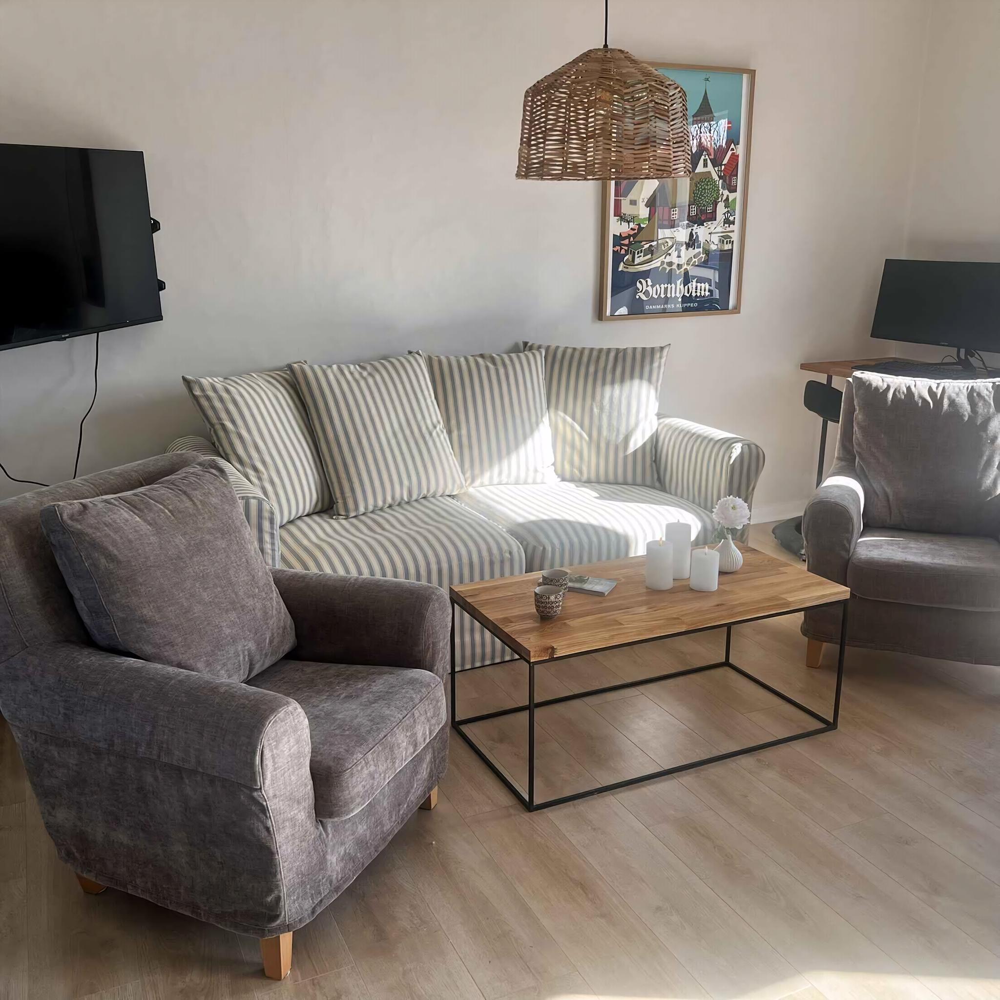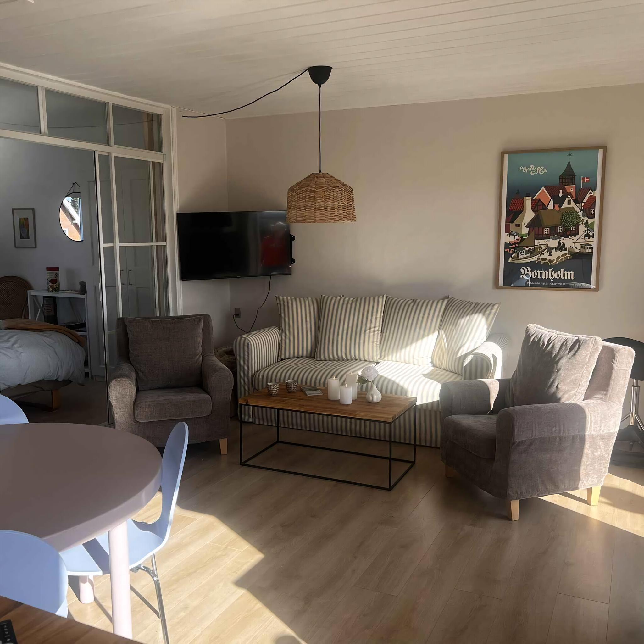 Ferielejlighed beliggende på klipperne i Sandvig. 1. parket – udsigt over klipper og hav – kun 50 meter fra havet. Drømmer du om at vågne til lyden af Østersøens bølger og udsigten til nord Bornholms knejsende klipper? Fra alle lejlighedens vinduer og glaspartier – i køkken, stue og de to værelser – inviteres den betagende udsigt ind – dramatisk om vinteren, gylden i sommermånederne. Altid fascinerende. Her bor du midt i naturens rå skønhed – med mulighed for at se både solopgang og solnedgang fra de to altaner. Her kan I klatre i klipperne akkompagneret til lyden af bølgernes leg med klipperne. Det er hvad denne lejlighed byder på og meget mere. Denne skønne og velindrettede ferielejlighed, beliggende på Strandvejen 52 B, 1. sal, i Sandvig ligger kun 50 meter fra havet – ferielejligheden er én ud af 6 i foreningen ”On the Rocks”, med beliggenhed direkte ud til Bornholms ikoniske klippekyst. Lejligheden Lejligheden er lys, moderne og indrettet med fokus på komfort og hygge, med en gennemgående ro – ideel til familier, par eller til dig, der ønsker at kombinere hjemmearbejde med naturoplevelser. Lejligheden er istandsat i 2026, helårsopvarmet og fuldt tilgængelig året rundt – perfekt til både sommerferie, efterårsophold, vinterro og forårets lyse dage. ?? Sovepladser (op til 6 personer) • Soveværelse 1: Dobbeltseng. • Soveværelse 2: Dobbeltseng, kan deles til to enkeltsenge. • Stue/køkkenalrum: Sovesofa med 2 ekstra sovepladser ?? Køkken & opholdsrum Det nye, moderne køkken er fuldt udstyret med: • Opvaskemaskine • Induktionskomfur • Ovn • Køleskab med lille fryser • Mikroovn • Elkedel og kaffemaskine Rundt spisebord med plads til 6 personer – kan udvides til 10 personer med tillægsplader plader. Stuen er hyggeligt indrettet med komfortable lænestole og sovesofa samt: • ?? Smart internet fladskærms-TV med mange kanaler og streaming • ?? Højhastigheds internet ?? To altaner – sol hele dagen • Østvendt altan – nyd solopgangen over havet med morgenkaffen/-teen • Vestvendt altan/svalegang til lejlighed 4 – oplev de spektakulære bornholmske solnedgange med et glas kølig hvidvin. Fra morgenens første lyse stråler, til aftenens gyldne farver, er naturen helt tæt på. ?? Arbejd med havudsigt – perfekt til workation Lejligheden har en lille, dedikeret arbejdsplads med skrivebord – ideel hvis du skal på computer. Der stilles en stor 32” computerskærm til rådighed, så du kan arbejde komfortabelt med fuld havudsigt. Her kan du kombinere hjemmearbejde og oplevelser – starte dagen med en gåtur langs klipperne, tage et online møde med udsigt over Østersøen og slutte dagen med solnedgang fra altanen. ?? Badeværelse Lyst og funktionelt badeværelse med bruseniche. Føntørre ?? Perfekt beliggenhed imellem de to byer - Allinge-Sandvig • ?? 500 meter til Sandvigs stor, børnevenlig sandstrand • ? Midt mellem og i kort gå afstand til både Sandvigs og Allinges autentiske granit havne, cafeer, restauranter, butikker, røgeri mm • ?? 500 meter til Folkemøde-pladsen • ?? Kort afstand til indkøb og opladning af elbiler • Gratis parkering Allinge-Sandvig er i dag to sammenvoksede byer med autenticitet, hygge og maritim stemning, små smalle gader med gamle huse og om sommeren med et levende sommer- og koncertliv. ?? Oplev Bornholm Bornholm byder på mange unikke naturoplevelser og kulturliv: 1. Hammershus 2. Opalsøen 3. Hammerknuden 4. Dyndalevandfaldet 5. Østerlars Rundkirke 6. Ekkodalen 7. Almindingen og bisonokser 8. Grønbecksgaard, Bornholms Center for Kunsthåndværk 9. Svaneke glaspusteri og smag en lokal øl. 10. Rønne den gamle bydel og shopping 11. Gudhjem og spise ”Sol over Gudhjem” 12. Christiansø 13. Helligdomsklipperne https://www.visitdenmark.dk/danmark/destinationer/bornholm/oplevelser-bornholm ? Derfor er denne lejlighed noget særligt ? Unik beliggenhed direkte på Nordbornholms klippekysten ? Havudsigt fra alle rum ? To altaner – sol hele dagen ? Højhastigheds internet ? Smart-TV med streaming ? Arbejdsplads med 32” skærm ? Helårsisoleret og opvarmet ? Gåafstand til strand, havn og byliv ? Perfekt til ferie, workation og forlængede weekend ophold Obs, udlejes ikke til erhversmæssigt brug.