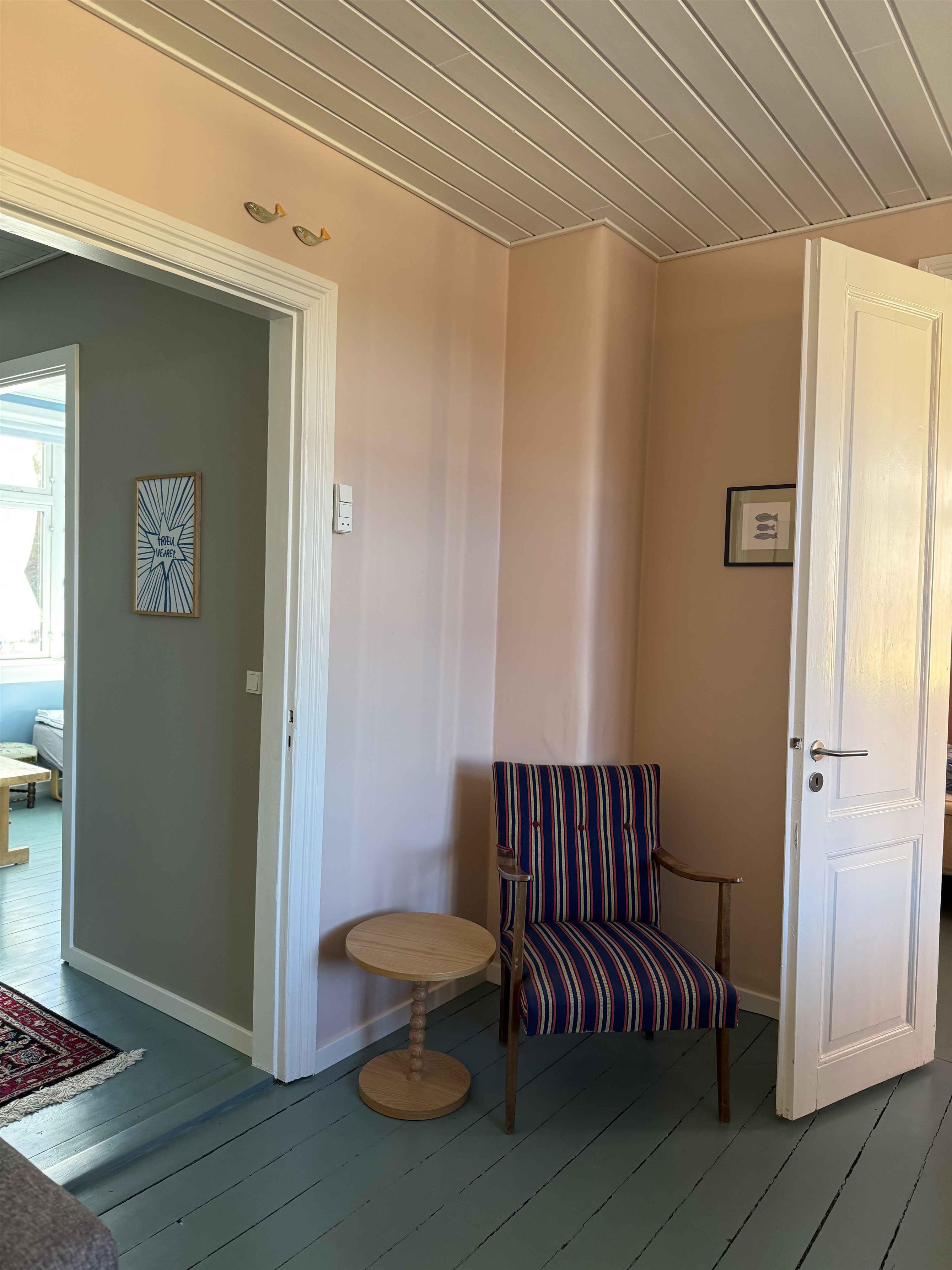 Nyrenoveret lejlighed i Villa Sandvig - tæt på strand, havn og klippekyst Denne lejlighed (nr. 2) er på 74 m2 og er beliggende i stueplan, med plads til fem personer. Lejligheden består af tre værelser, hvoraf de to er soveværelser med plads til to personer i det ene og tre i det andet. Ud over entre med adgang til funktionelt badeværelse, nyt køkken med opvaskemaskine, indeholder lejligheden en stue med spiseplads og sofahjørne. Herfra har du kig over Sandvigs tage og Hammerknuden. I gårdhaven har man egen solkrog med bord og stole - og resten af gården deles med en anden lejlighed. Så er man to familier afsted - på fire og fem personer - er det den perfekte kombination at leje begge lejligheder. Lejligheden er en del af VILLA SANDVIG - et dejligt byhus, centralt beliggende i Sandvig. Huset består af tre lejligheder, der alle er renoveret i 2026 og indrettet så du føler dig hjemme. Det håber vi du mærker, værdsætter og passer på til de næste. Her er øje for detaljen og alle lejligheder er indrettet med en blanding af nyt og genbrugsfund, ligesom der er gang i farvepaletten. To lejligheder er beliggende i stueplan, mens den tredje lejlighed ligger på 1. sal med udsigt over Hammeren, Østersøen og Sandvigs tage. Lejlighederne udlejes separat, men er I flere familier på ferie sammen, er det ideelt at leje to eller tre lejligheder på samme tid. Vi udlejer fra søndag til søndag, sådan at der kan opnås billigere færgebilletter og hele afrejseweekenden kan nydes på Bornholm. SANDVIG er gennemsyret af en fantastisk afslappet stemning og du har det det bedste af Bornholm lige uden for døren. Her er fantastiske muligheder for at kombinere aktive dage med rolige stunder ved kysten. Her er et rigt udbud af gode restauranter – her møder du god kvalitet og fantastisk værtskab. Det samme møder du på Kalas’ vidunderlige terrasse, hvor du kan nyde den lækreste kaffe og is med den bedste udsigt. Du har strand, havn og Hammerknudens fantastiske natur - et oplagt udflugtsmål for både vandreture, udsigtspunkter og oplevelser i det bornholmske klippelandskab. De bedste ruter, hvis du vil cykle – og have nogle højdemeter i benene. Og så er du i gåafstand til Wonderfestival i uge 33 eller Gæstens fantastiske koncertprogram i sommerferien. Kun 100 meter fra boligen venter stranden og havet og til havnen er der godt 200 meter. Den korte afstand gør det nemt at tage en morgen- eller aftendukkert, ligesom du kan nyde udsigten og lyset over vandet uden at skulle bevæge dig for langt. Området omkring Sandvig er noget særligt for feriegæster, der ønsker både natur, byliv og oplevelser tæt på. Her er gode muligheder for både aktive feriedage og rolige stunder ved vandet. Alt i alt en feriebolig tæt på alt det, mange rejser til Bornholm for at opleve – uden at gå på kompromis med ro og nærhed.