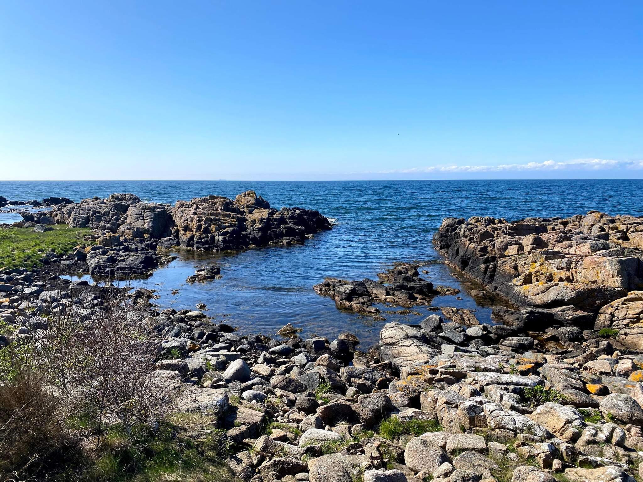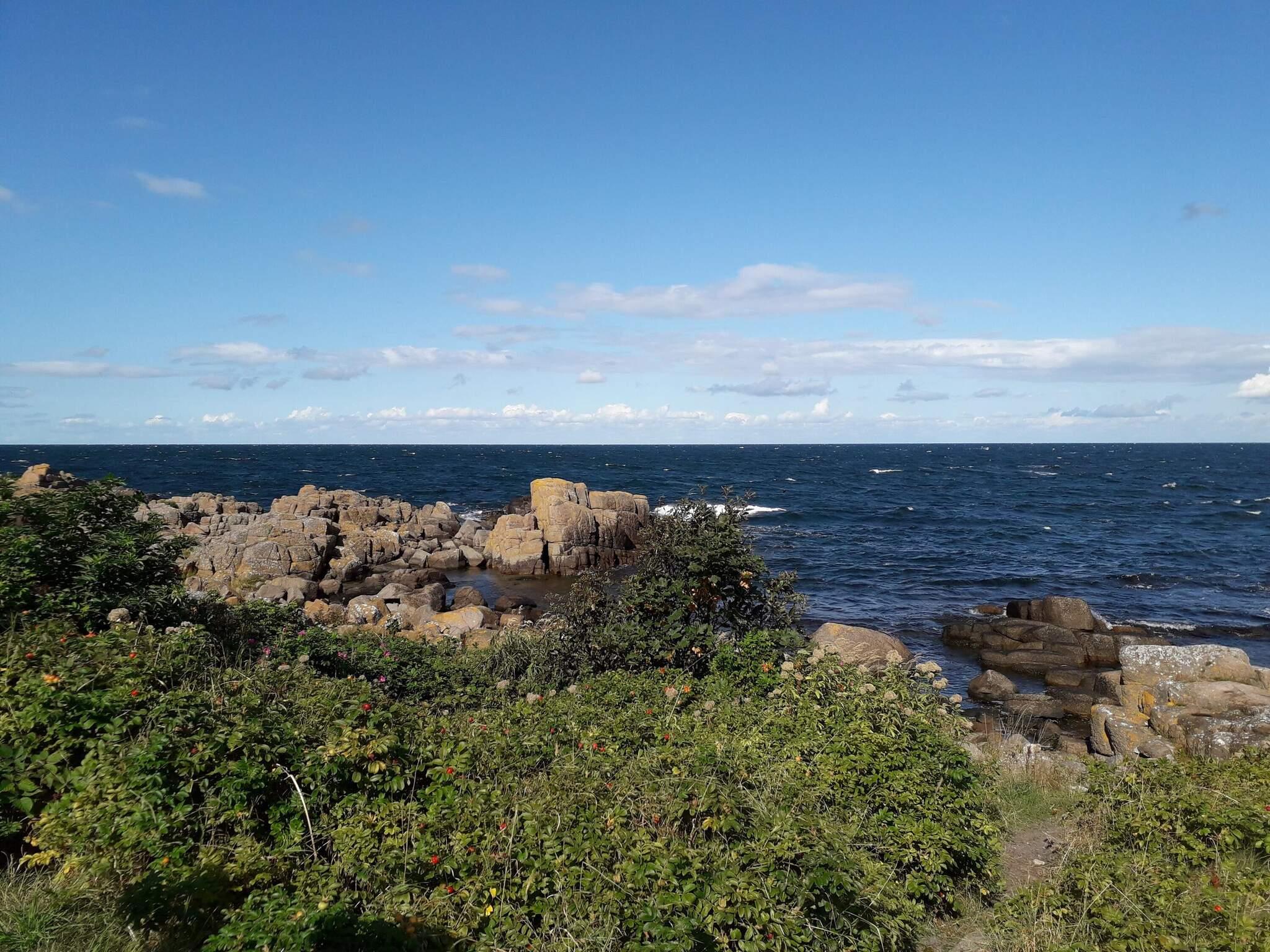 Moderne sommerhus i Allinge med spabad, brændeovn og smuk naturgrund tæt på kysten.