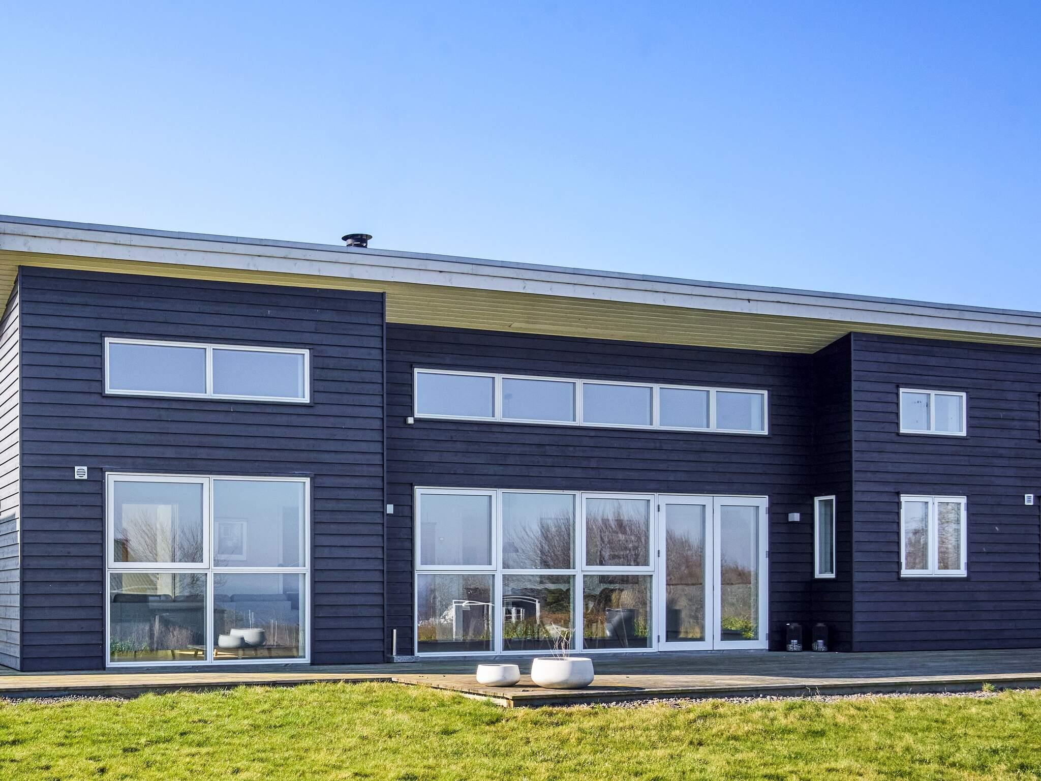 Sommerhus med delvis havudsigt. Huset fremtræder overalt lyst og indbydende. Fra husets kombinerede spise/opholdsstue med komfortable møbler har I direkte udgang til den 110 m2 store træterrasse, hvor mange hyggelige feriestunder kan nydes. Huset har gulvvarme og opvarmes via luft/vand varmepumpe. Husets høje komfort og mange moderne faciliteter gør det velegnet til ophold uanset årstid.