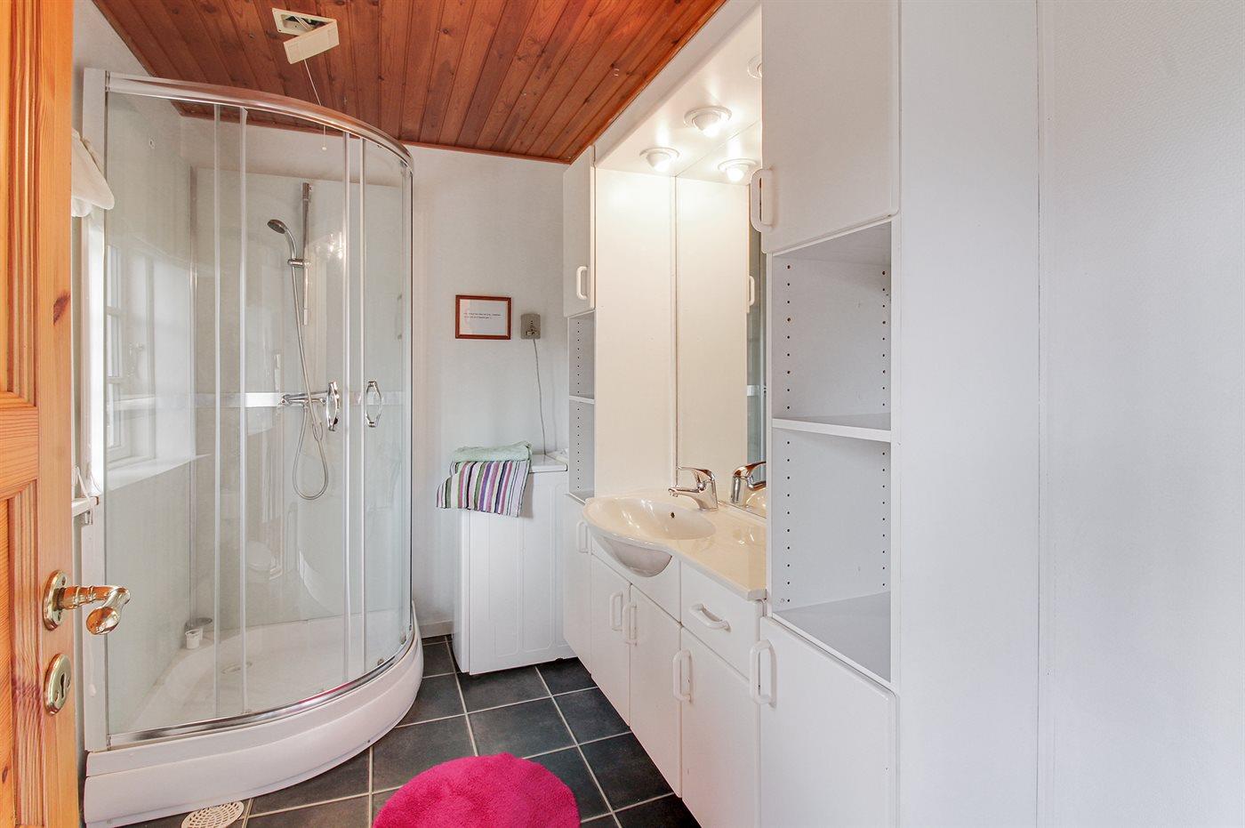 Der er 1 badeværelse med bruseniche og 1 toilet.