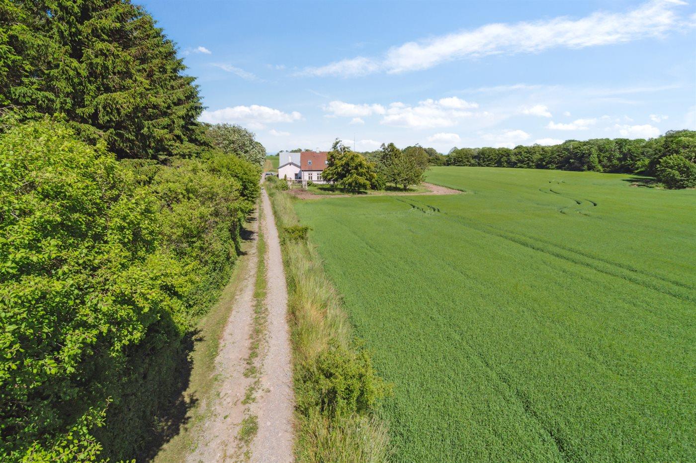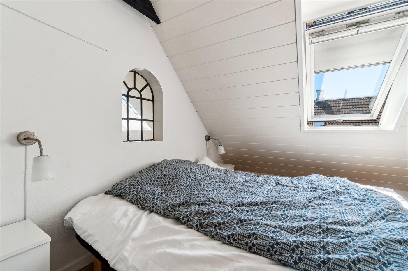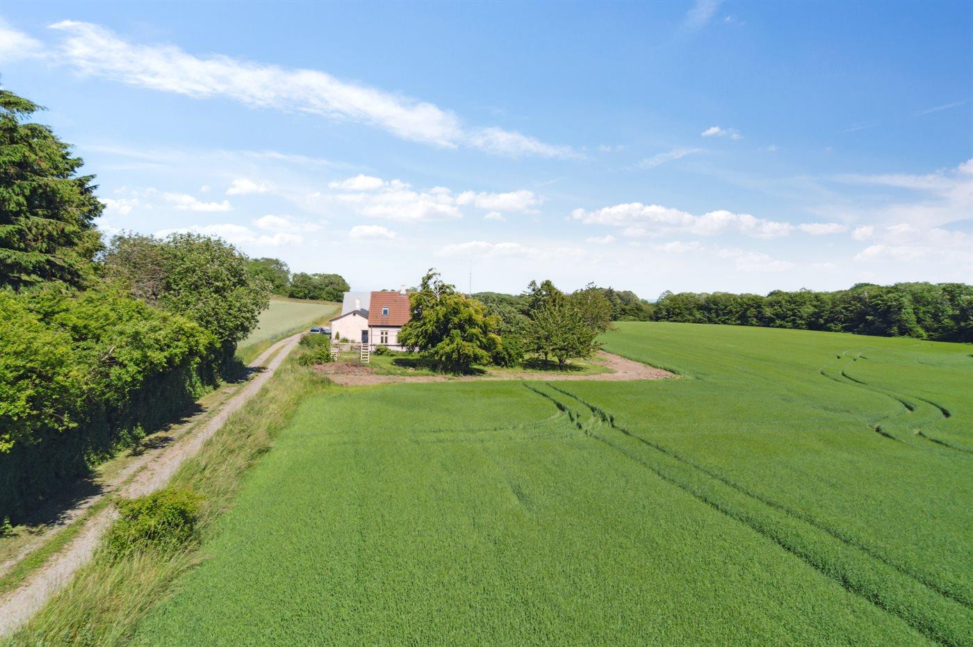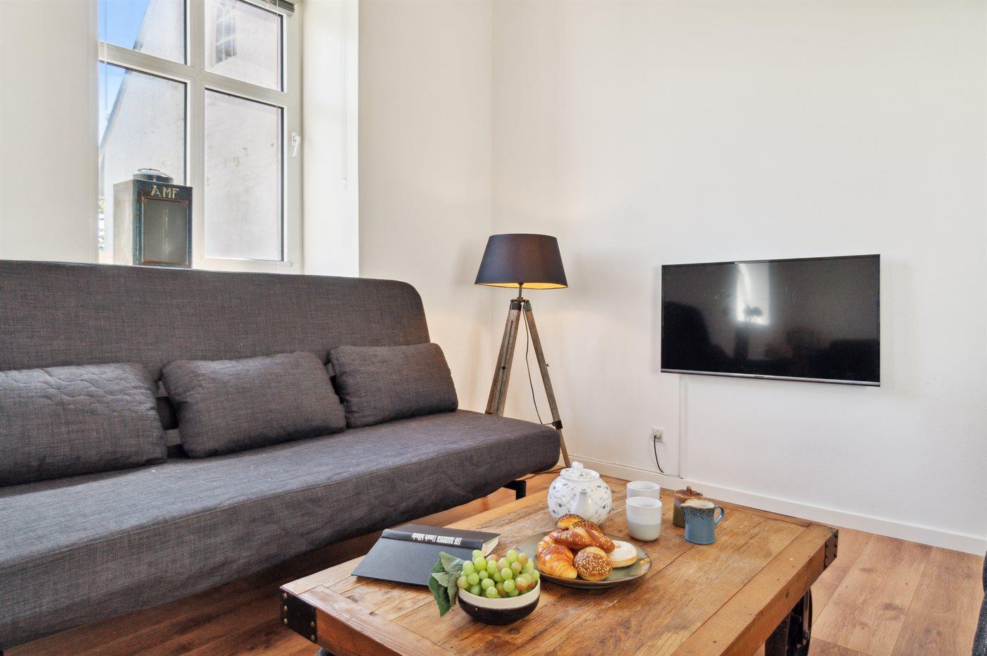 Der er højt til loftet i den moderniserede lejlighed, der er i to plan med soveværelser oppe. Nyere køkkenafdeling og større badeværelse. Interiøret er lyst med hvide vægge og lofter, og der er loft til kip. Boligen er pæn, ordentlig og hyggelig. Der er egen indgang fra terrasse med havemøbler og et udsyn ned over mark og eng. Desuden egen P-plads.