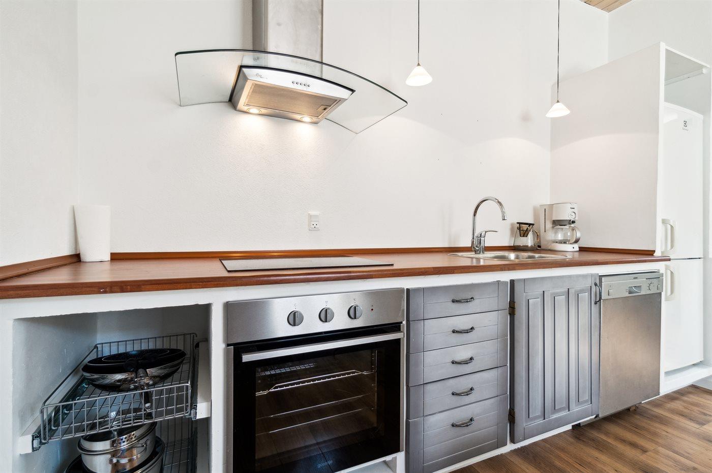Køkkenet er udstyret med 1 køleskab. Der er 4 induktionskogeplader, varmluftovn samt opvaskemaskine Der er gulvvarme i køkkenet.