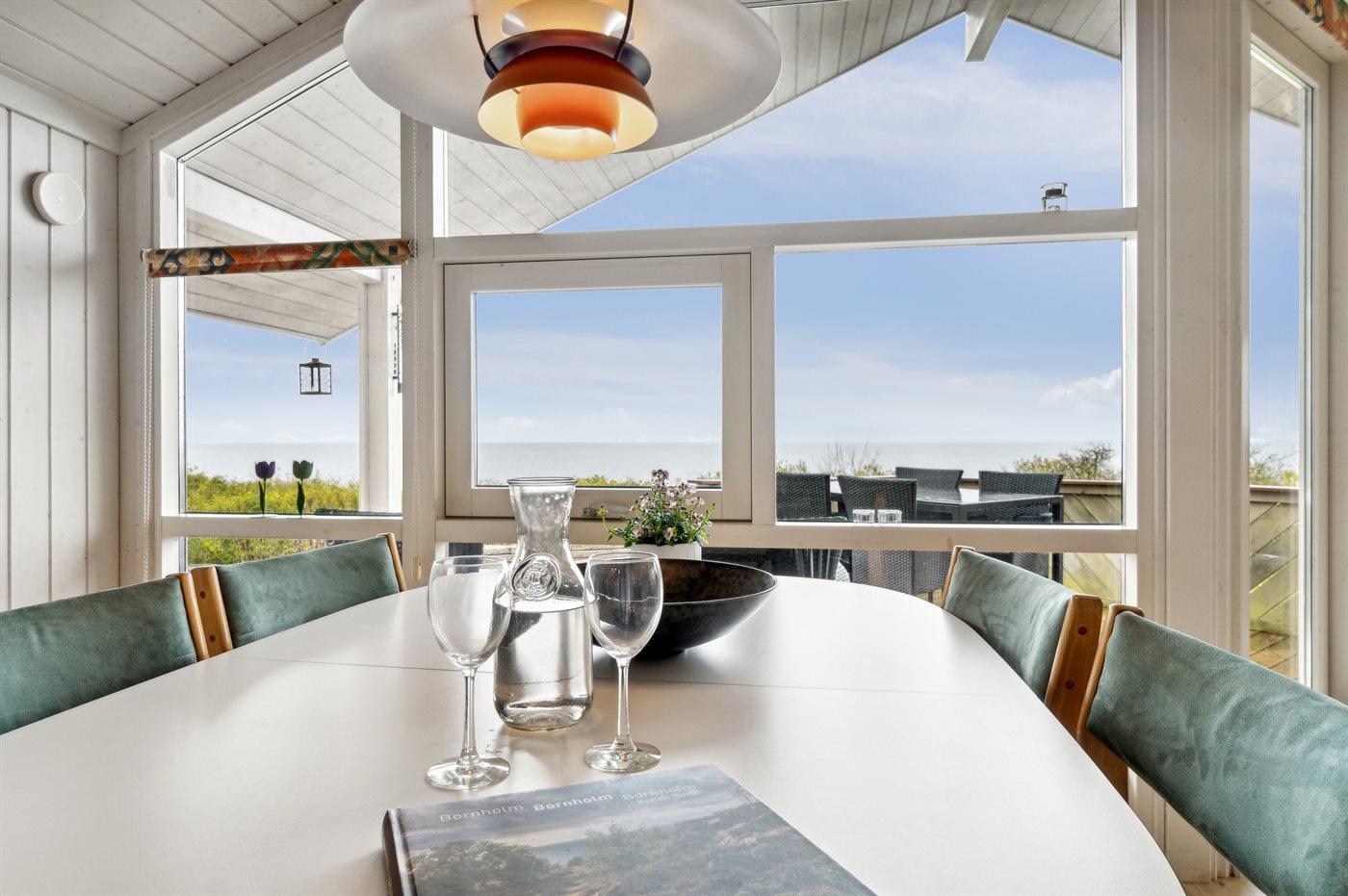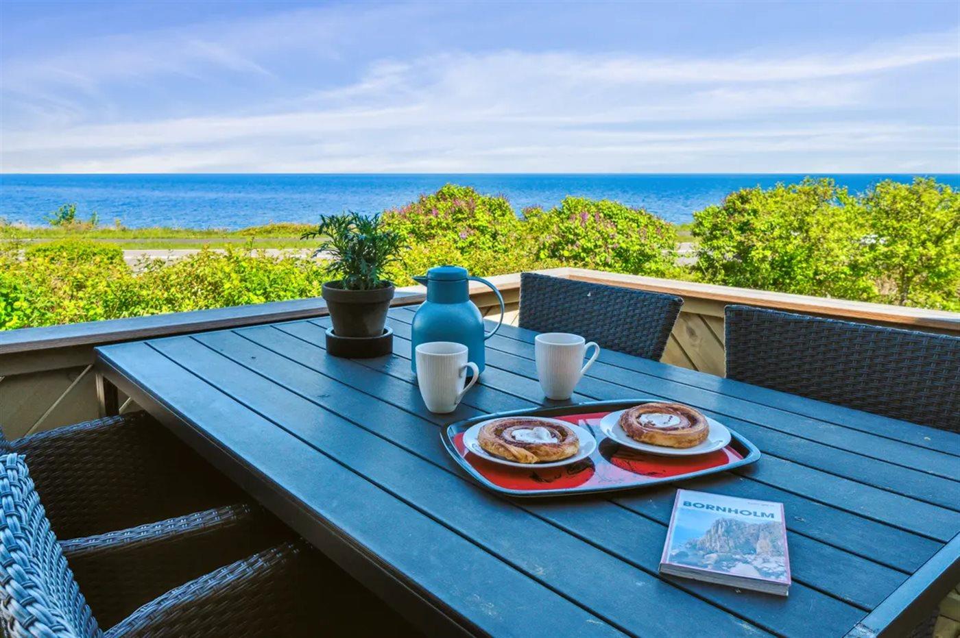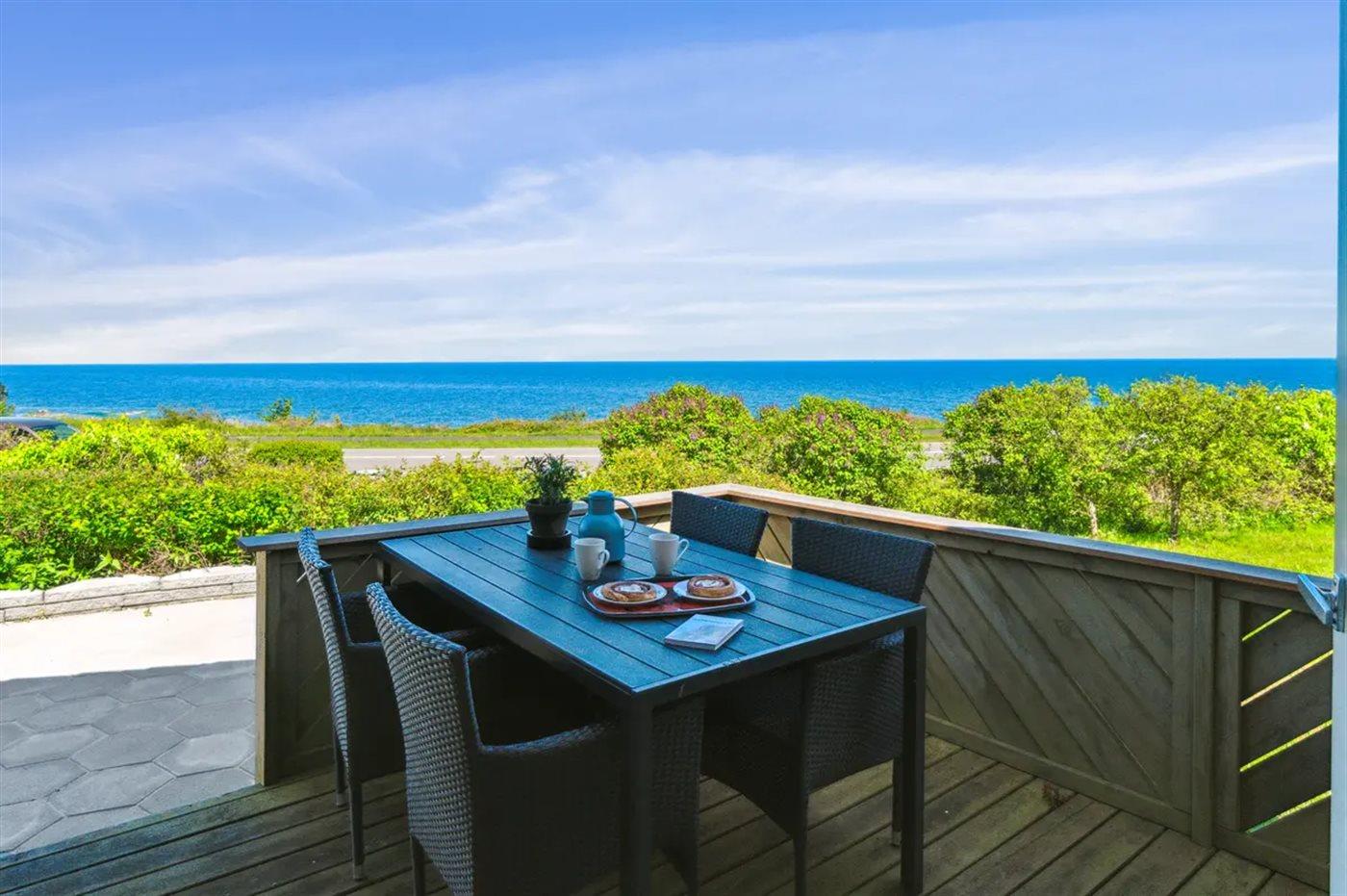 Nyd en moderne feriebolig med havudsigt, terrasse og sauna nær Allinge ved Bornholm.
