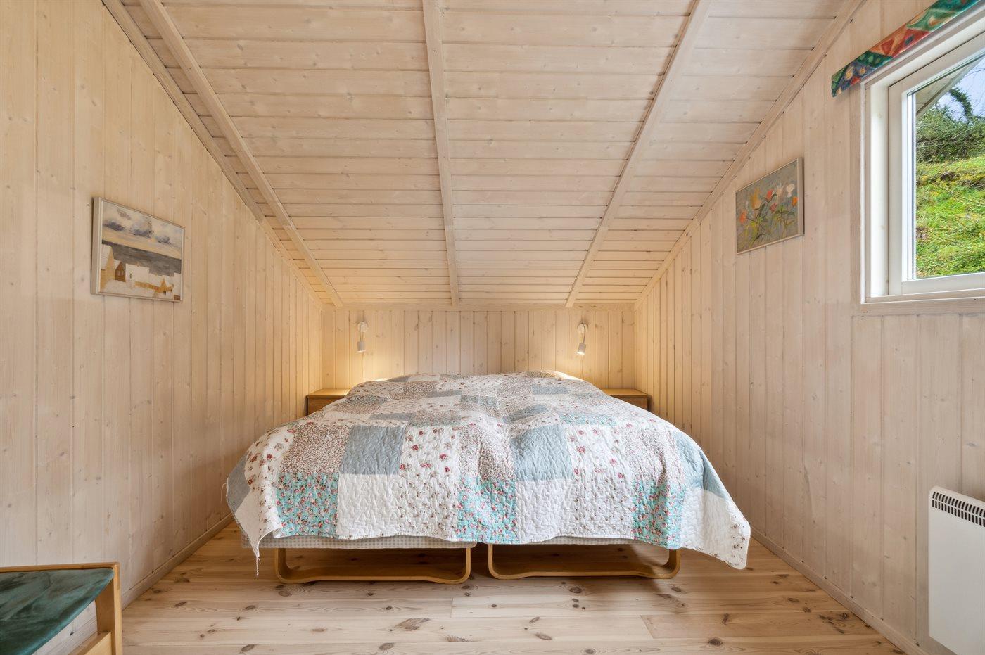 Der er i alt 2 soveværelser. Sovepladserne fordeler sig på: 2 sovepladser i dobbeltseng.2 sovepladser i elevationssenge.