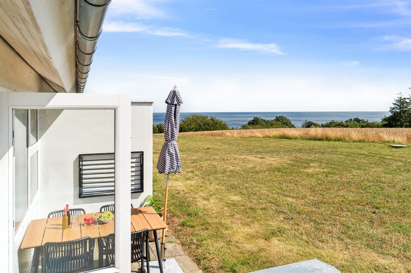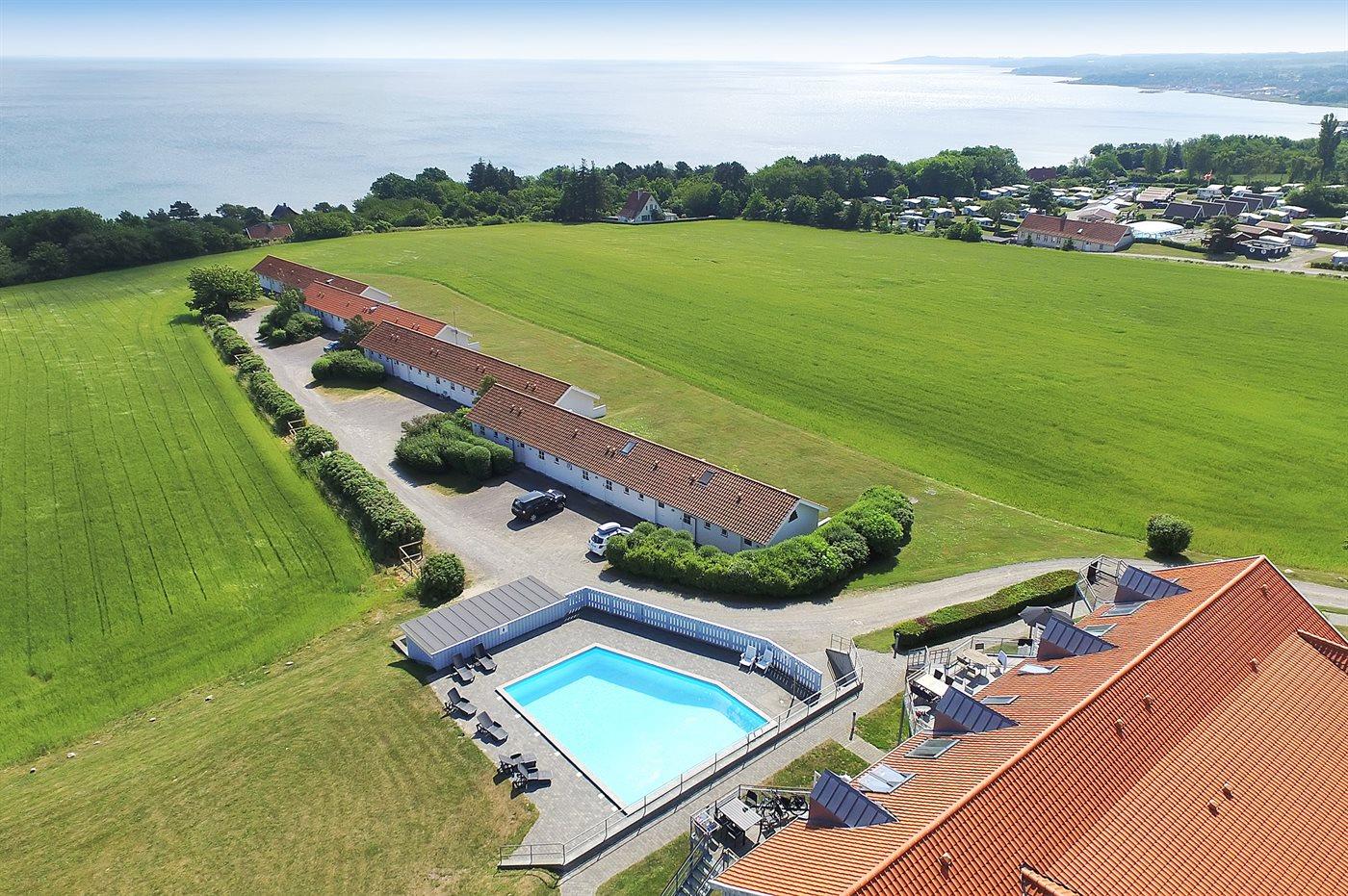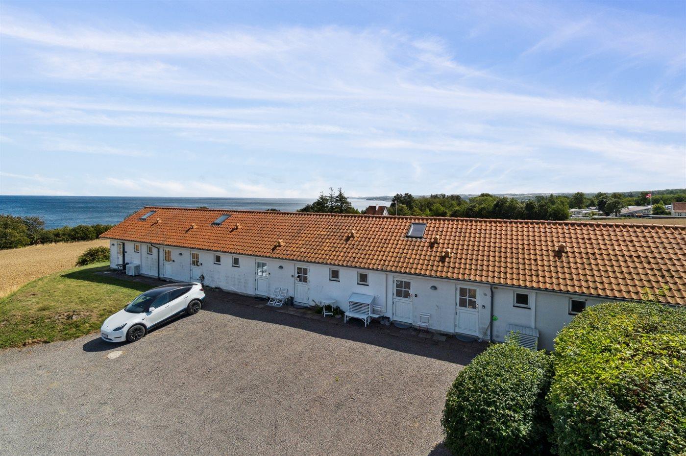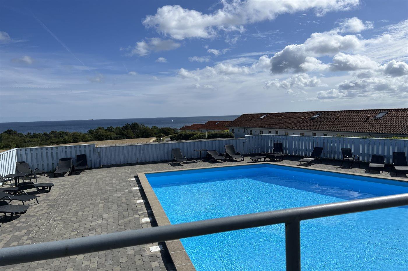 Charmerende ferielejlighed i Boesvang med havudsigt og adgang til opvarmet pool.