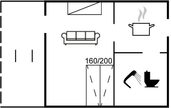 Sovepladserne fordeler sig på: 1 soveplads i enkeltseng. 2 sovepladser i sovesofa (dobbelt).