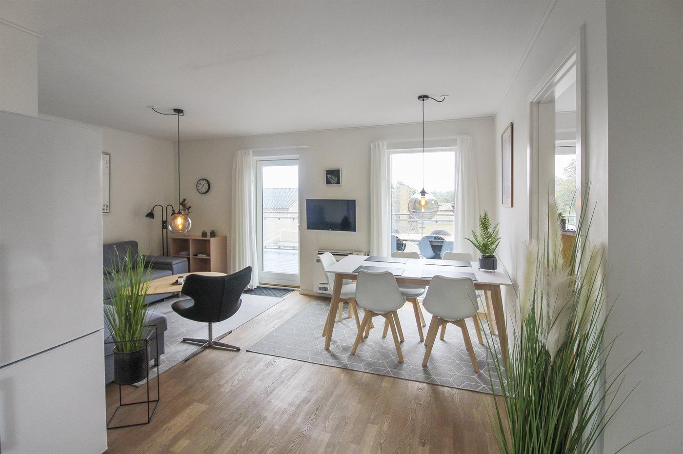Velholdt ferielejlighed med stor terrasse og havudsigt nær stranden i Allinge.