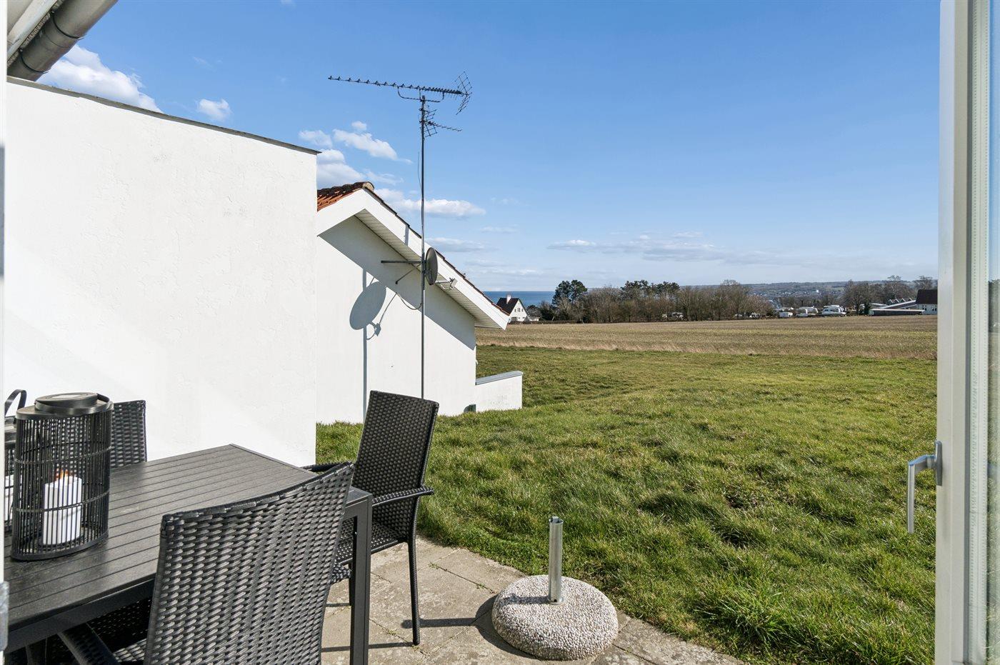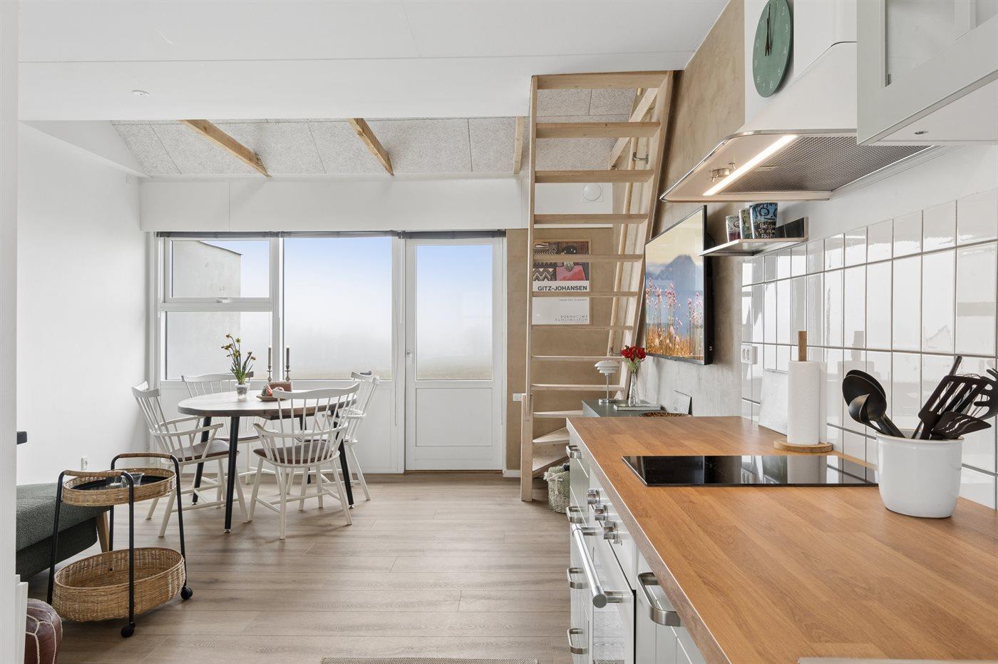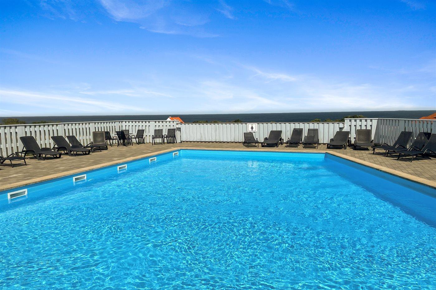 Lejlighed med havudsigt, moderne køkken og adgang til opvarmet pool i Allinge.