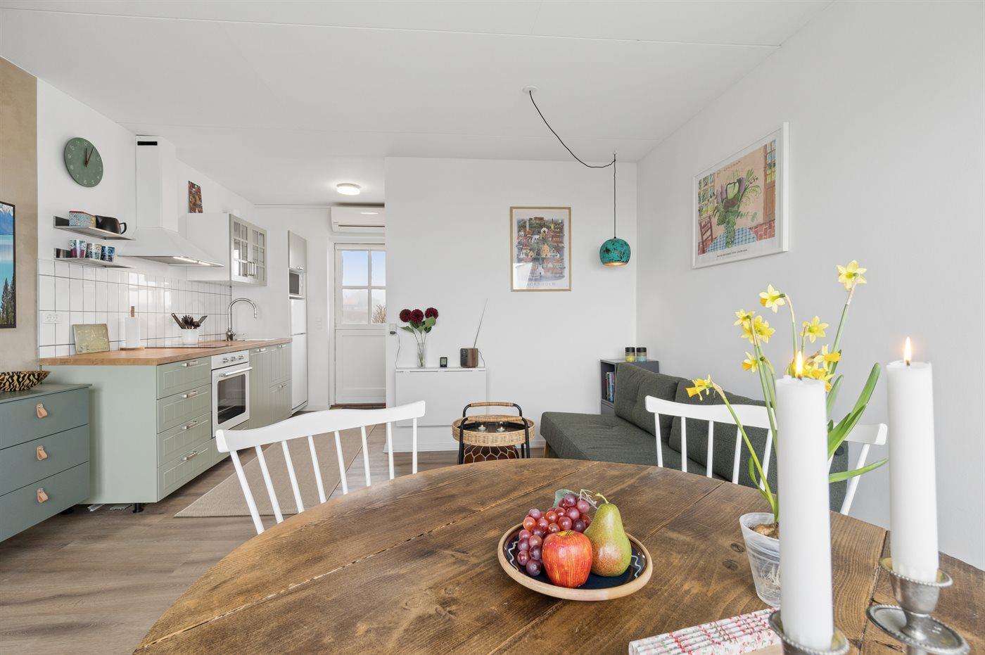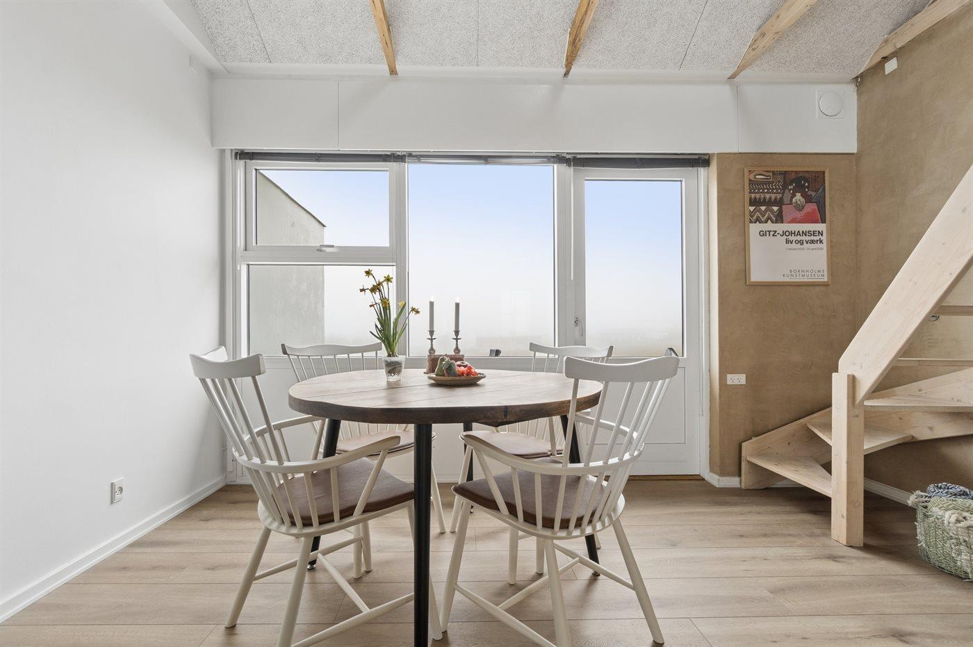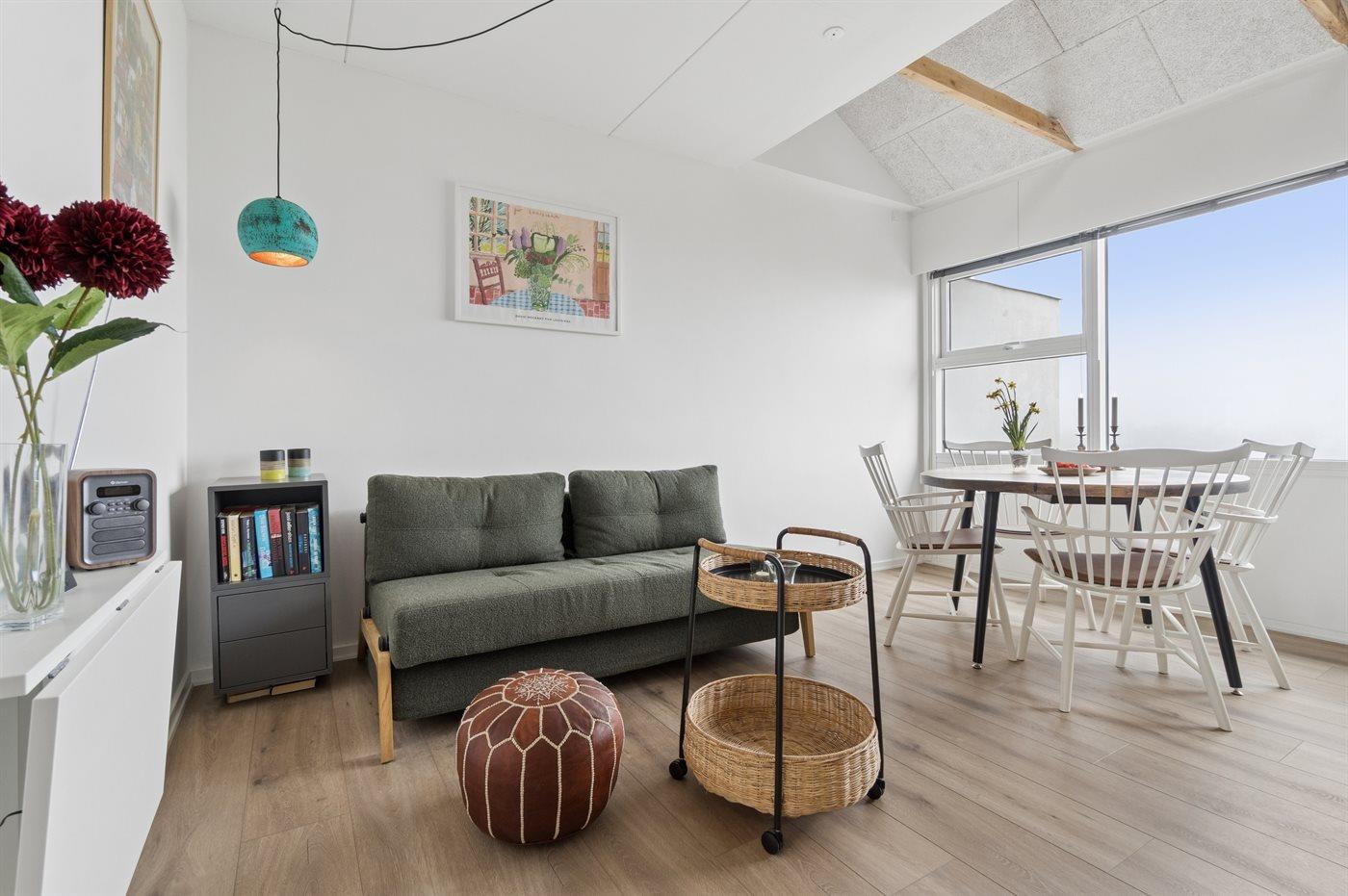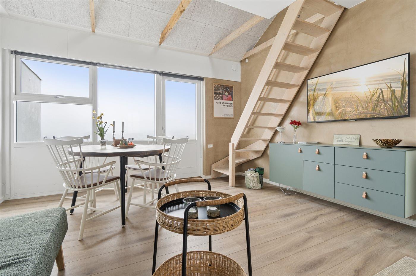 Lejlighed med havudsigt, moderne køkken og adgang til opvarmet pool i Allinge.