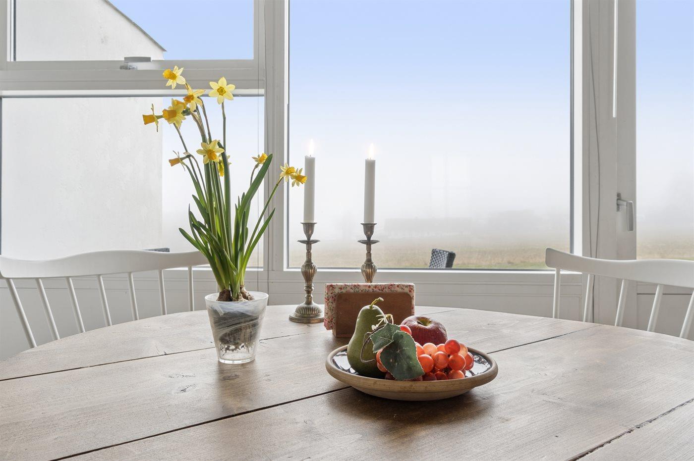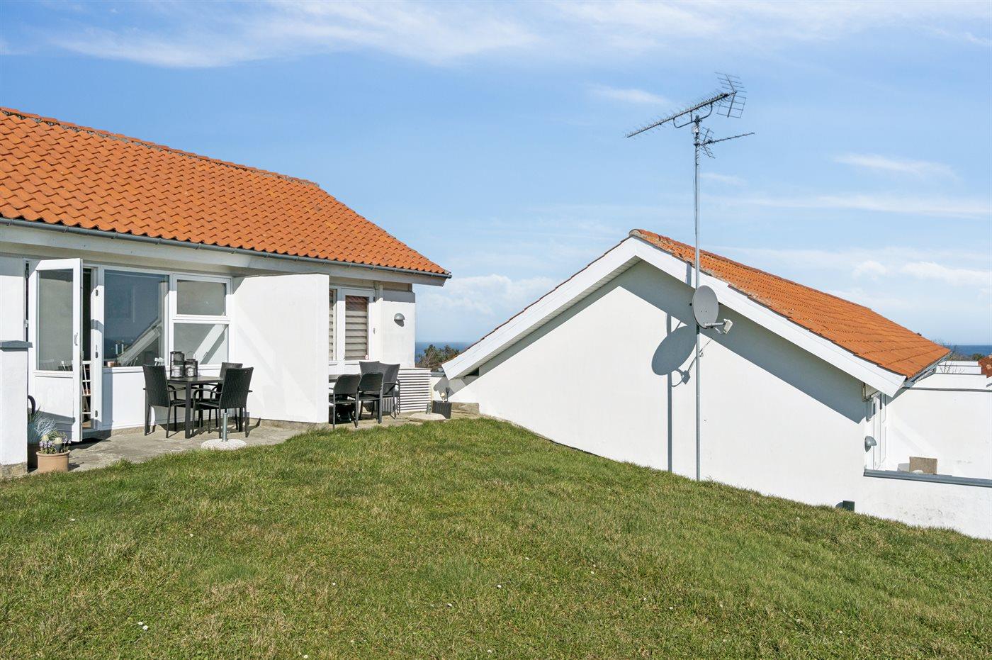 Denne lejlighed har en fin udsigt fra stue og terrasse ud over Østersøen. Langs klippekysten får man et flot kig, der strækker sig helt til det idylliske Gudhjem. Hemsen blev moderniseret i 2022, og lejligheden er gennemgående renoveret i stueplan i 2026 med helt ny og funktionel køkkenafdeling. Lejligheden fremstår indbydende og man fornemmer, at stilen er gennemført i god kvalitet. Boligen udlejes til max. 2 voksne og 2 børn.