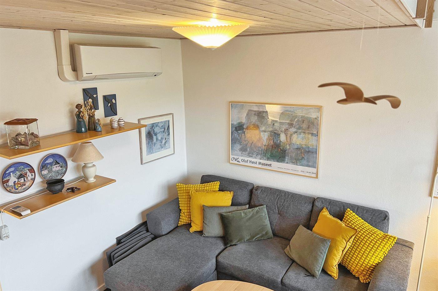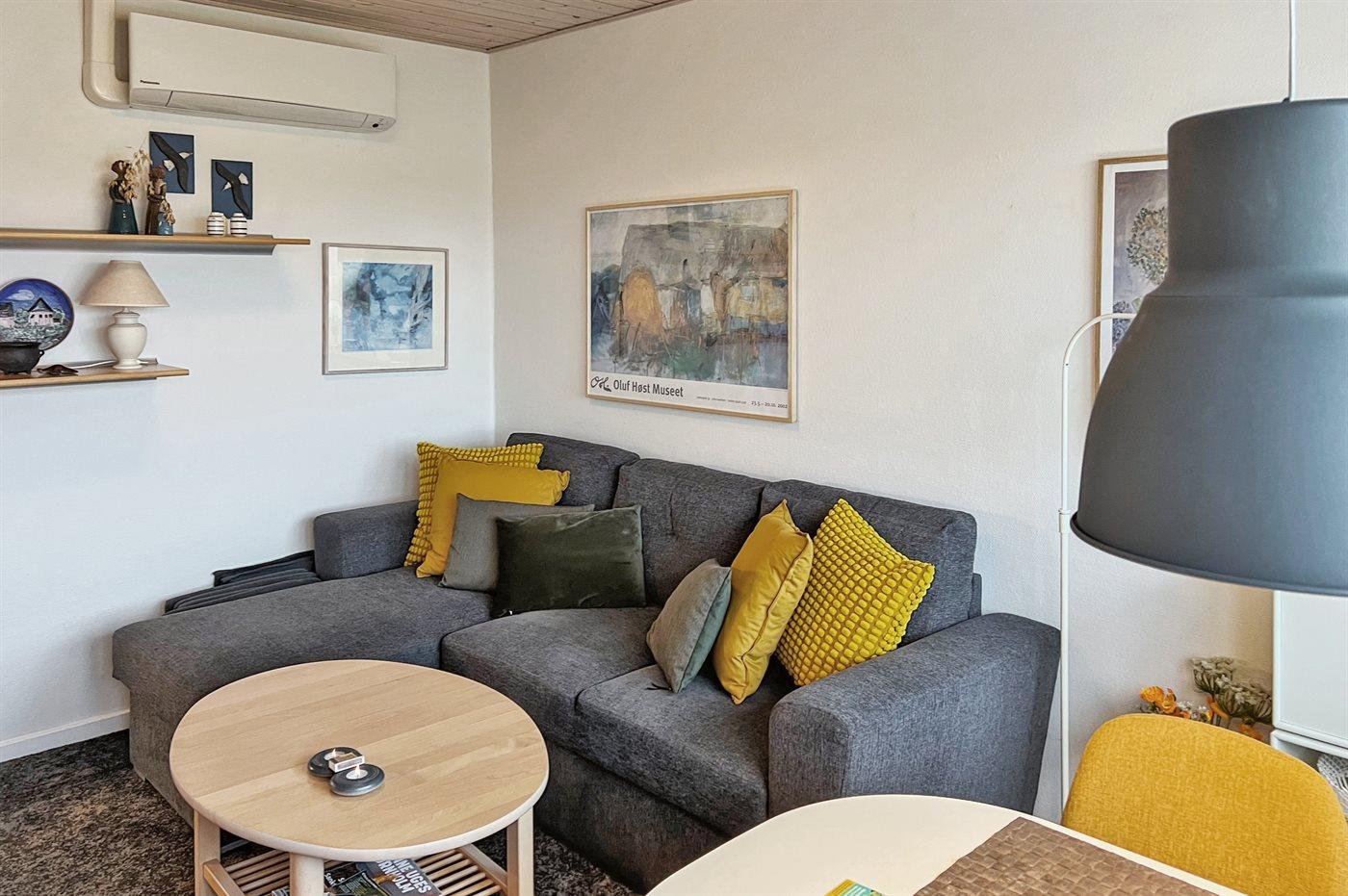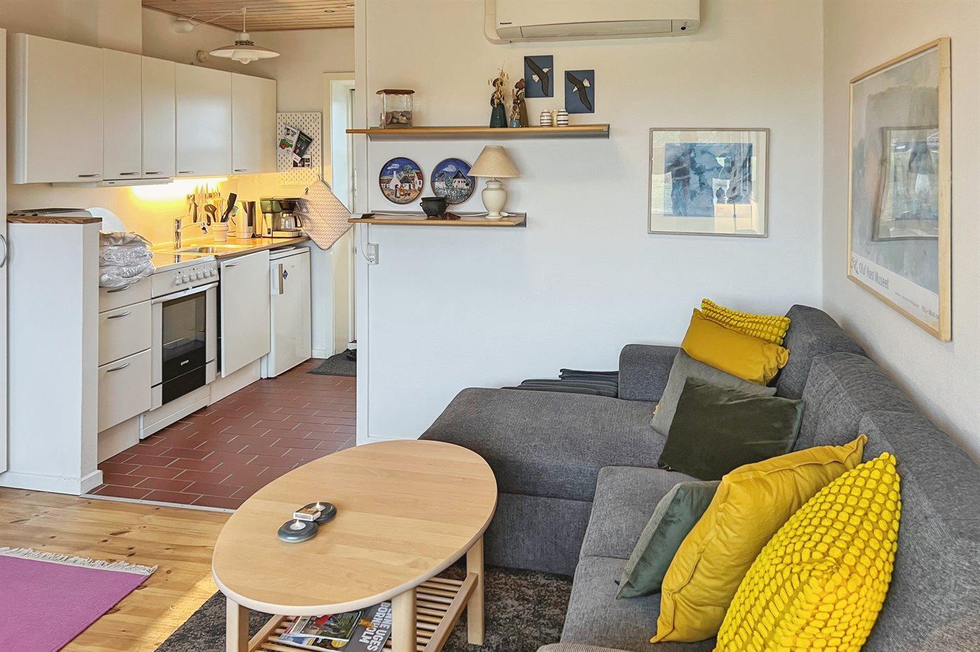 Lejligheden fremtræder velindrettet og velholdt, funktionelt køkken og bad med gulvvarme. Kombineret spise- og opholdsstue med udgang til terrasse og grønne arealer. Fra stuen opgang til hems. Bemærk: Der er lav loftshøjde på hems (1,5 m). Sovepladserne fordeler sig på 2 sovepladser i dobbeltseng på hems samt 2 sovepladser på sovesofa (måler 140x200 cm) i opholdsstuen.