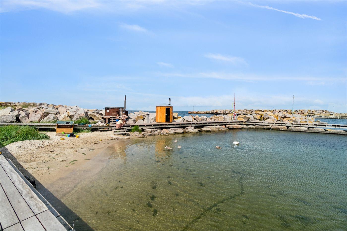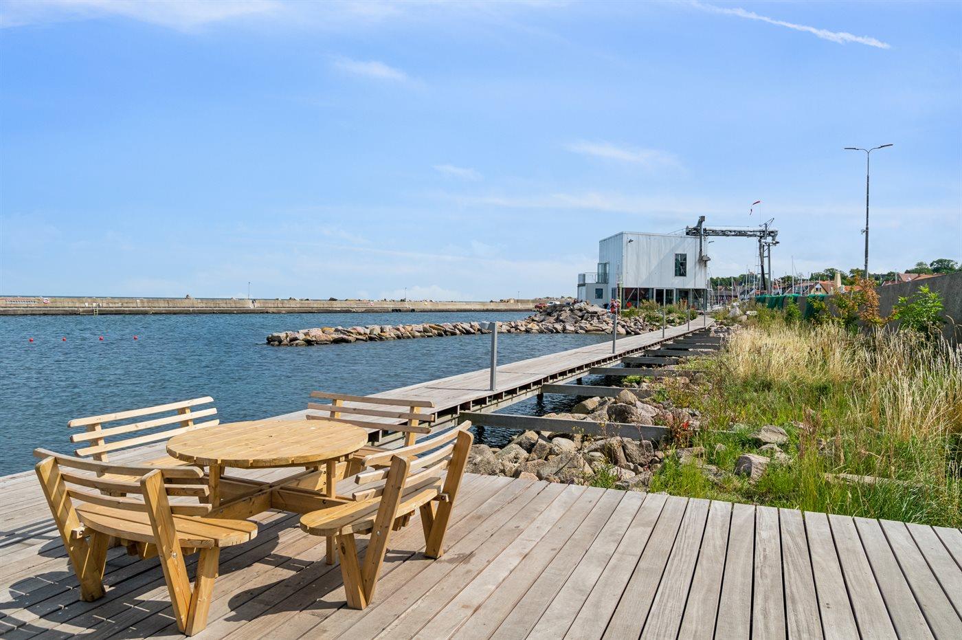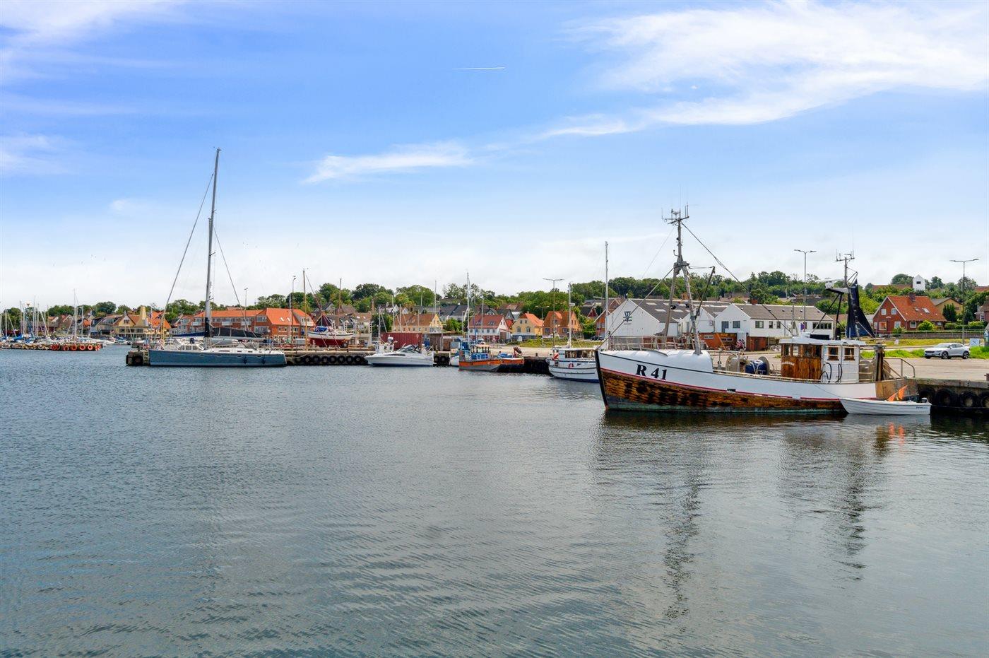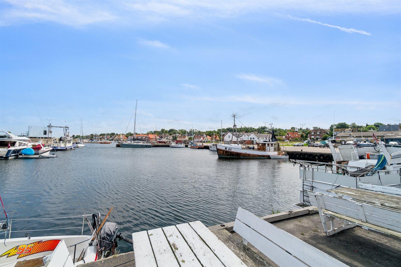 Ønsker man at følge livet på havnen og i byen Tejn, så er beliggenheden rigtig fin. Samtidig ligger ferieboligen lidt tilbagetrukket, så man kan holde ferie i ro og mag.