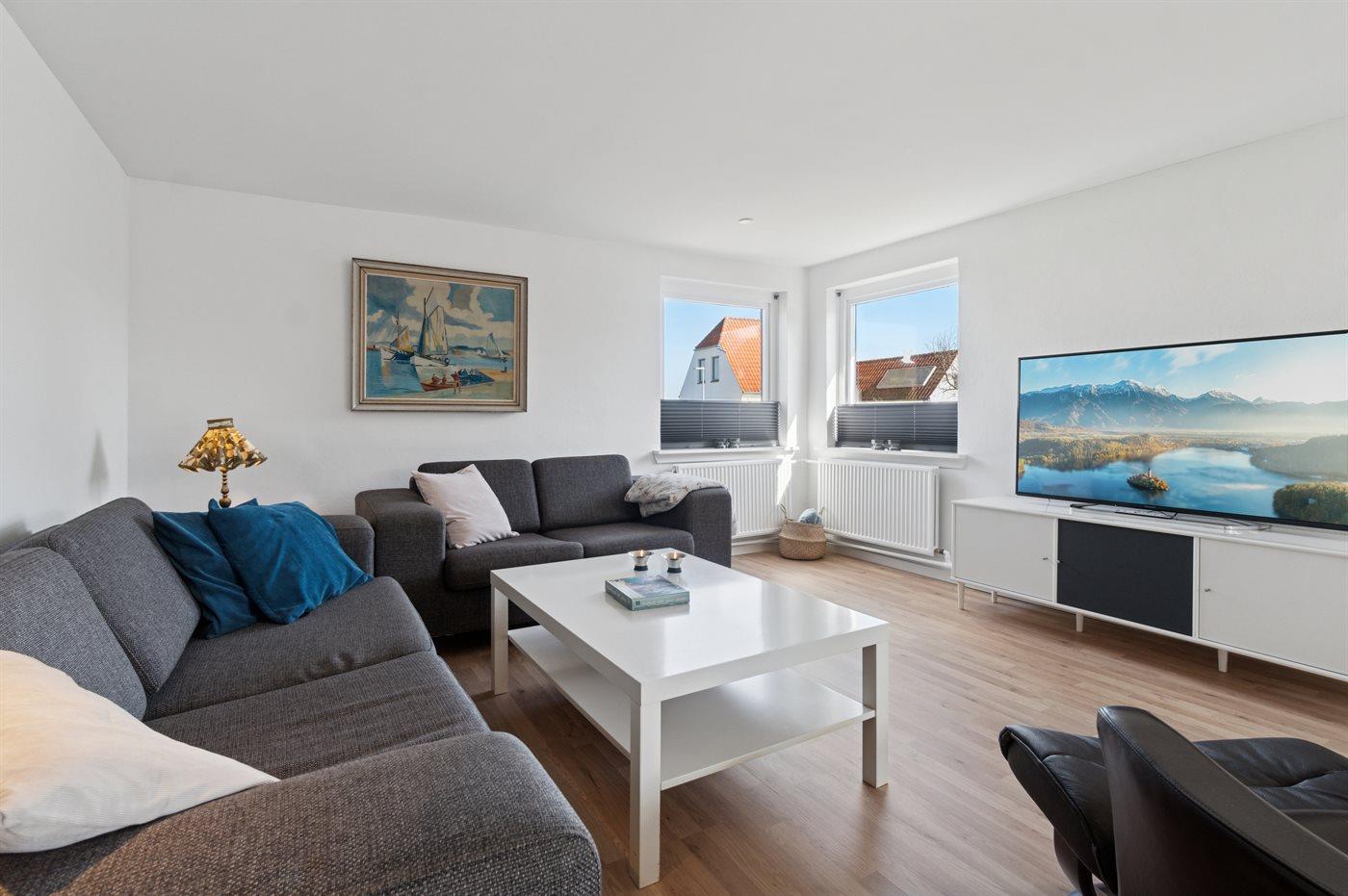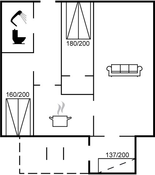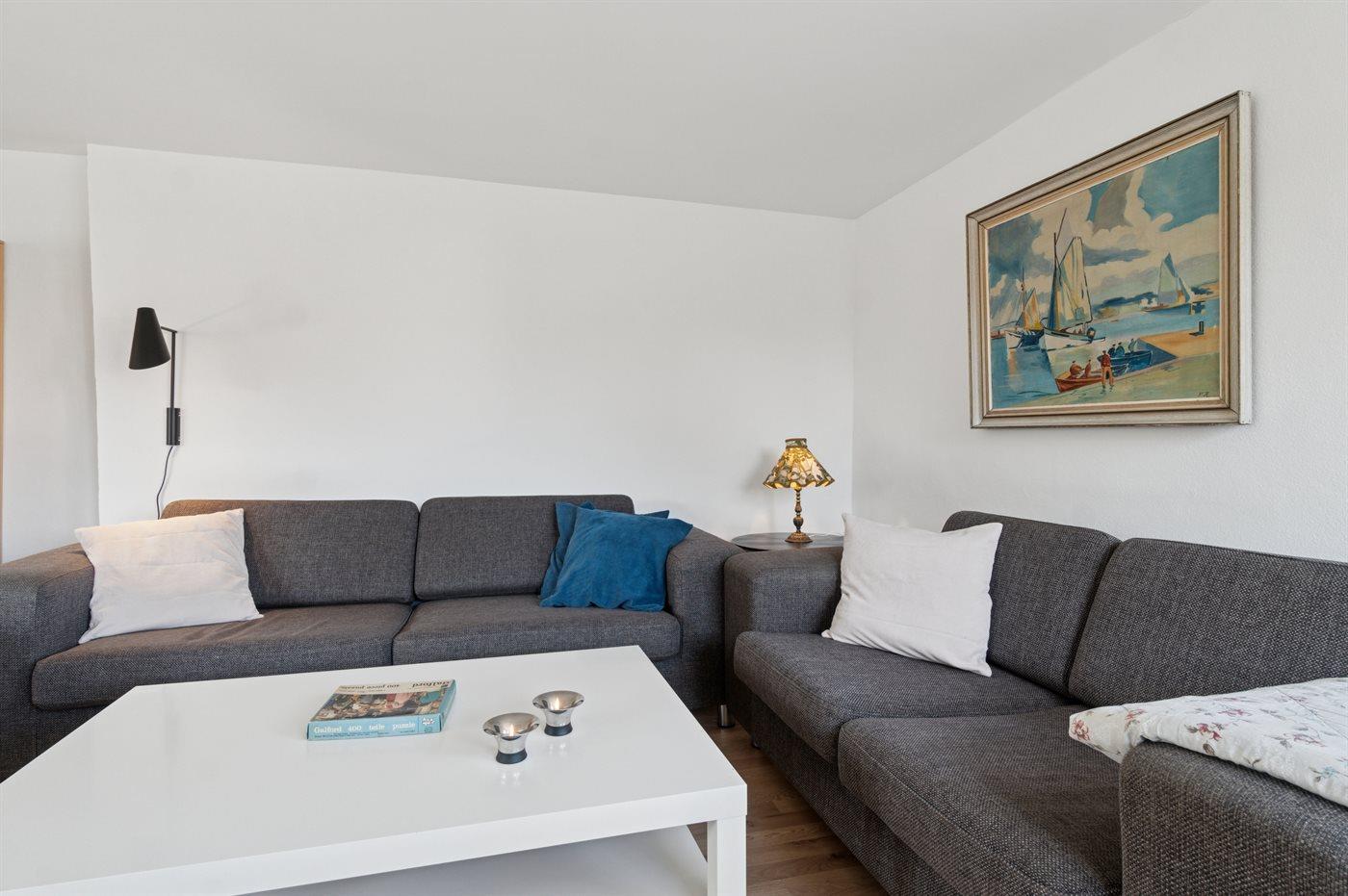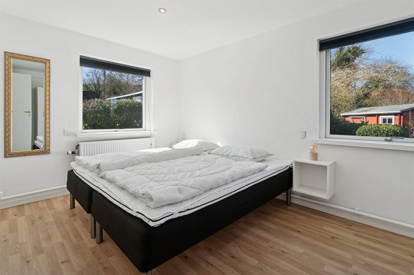 Der er i alt 2 soveværelser. Sovepladserne fordeler sig på: 4 sovepladser i dobbeltsenge. 1 soveplads i sovesofa (enkelt).1 af disse sovepladser befinder sig i stuen.