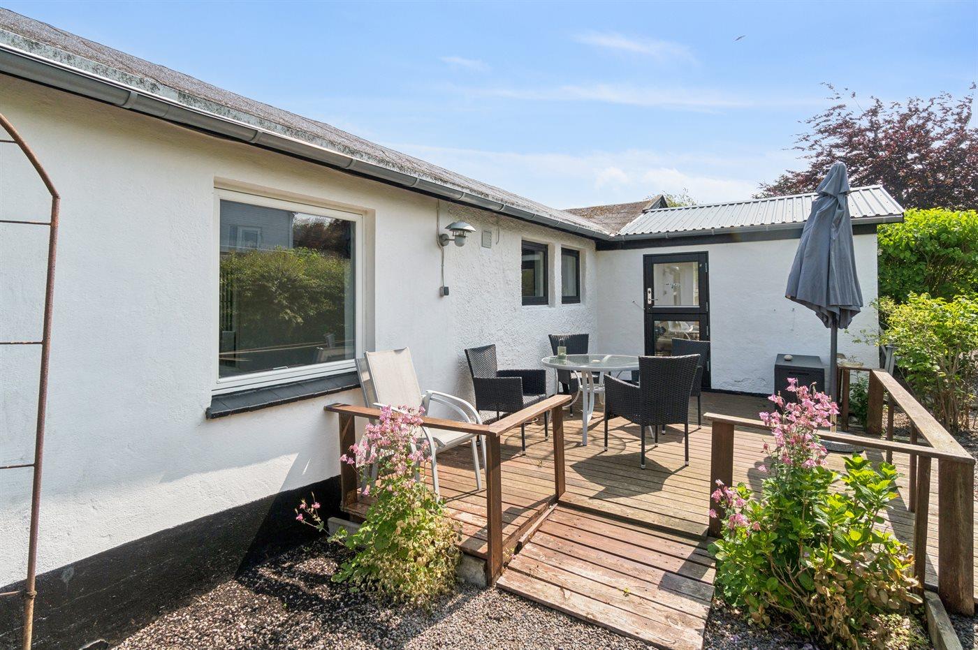 Pænt renoveret sommerhus tæt på vandet med havudsigt og en hyggelig terrasse i Sandkås.