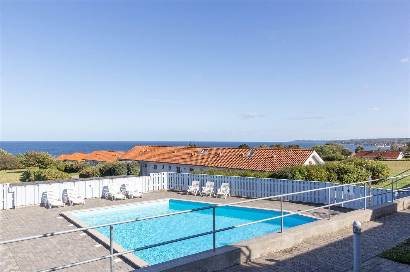 Lys ferielejlighed med havudsigt og adgang til opvarmet pool i Boesvang nær Allinge.