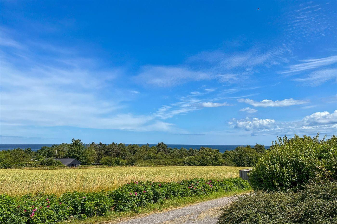 Lys ferielejlighed på 28 kvadratmeter beliggende med den fineste udsigt ud over markerne i det skrånende terræn og ud over Østersøen med Christians Ø i det fjerne. Ferielejligheden er indrettet med stue, mindre køkken og indbydende badeværelse. Køkkenet byder på køleskab, elkogeplader og miniovn. Dobbelt sovesofa i stuen.