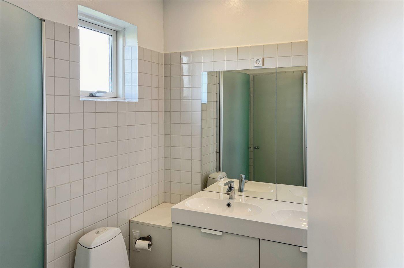 Der er 1 badeværelse med bruseniche. Der er gulvvarme på 1 badeværelse.