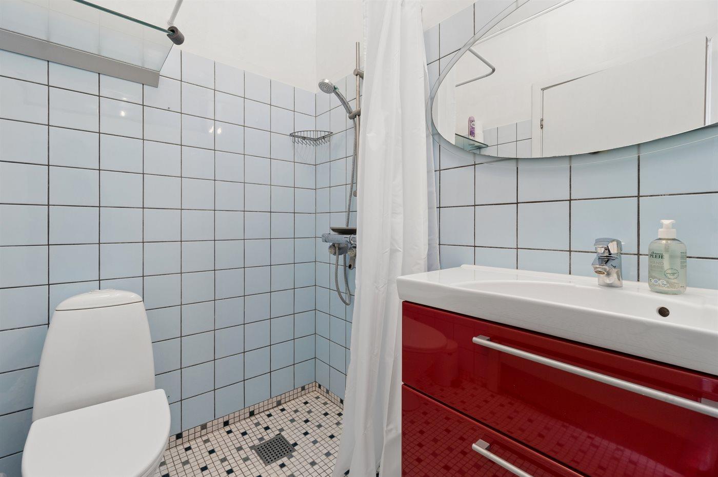 Der er 1 badeværelse med bruseniche og 1 toilet.. Der er gulvvarme på 1 badeværelse.