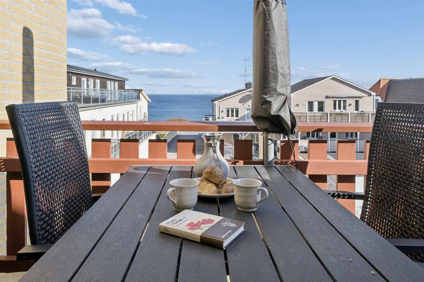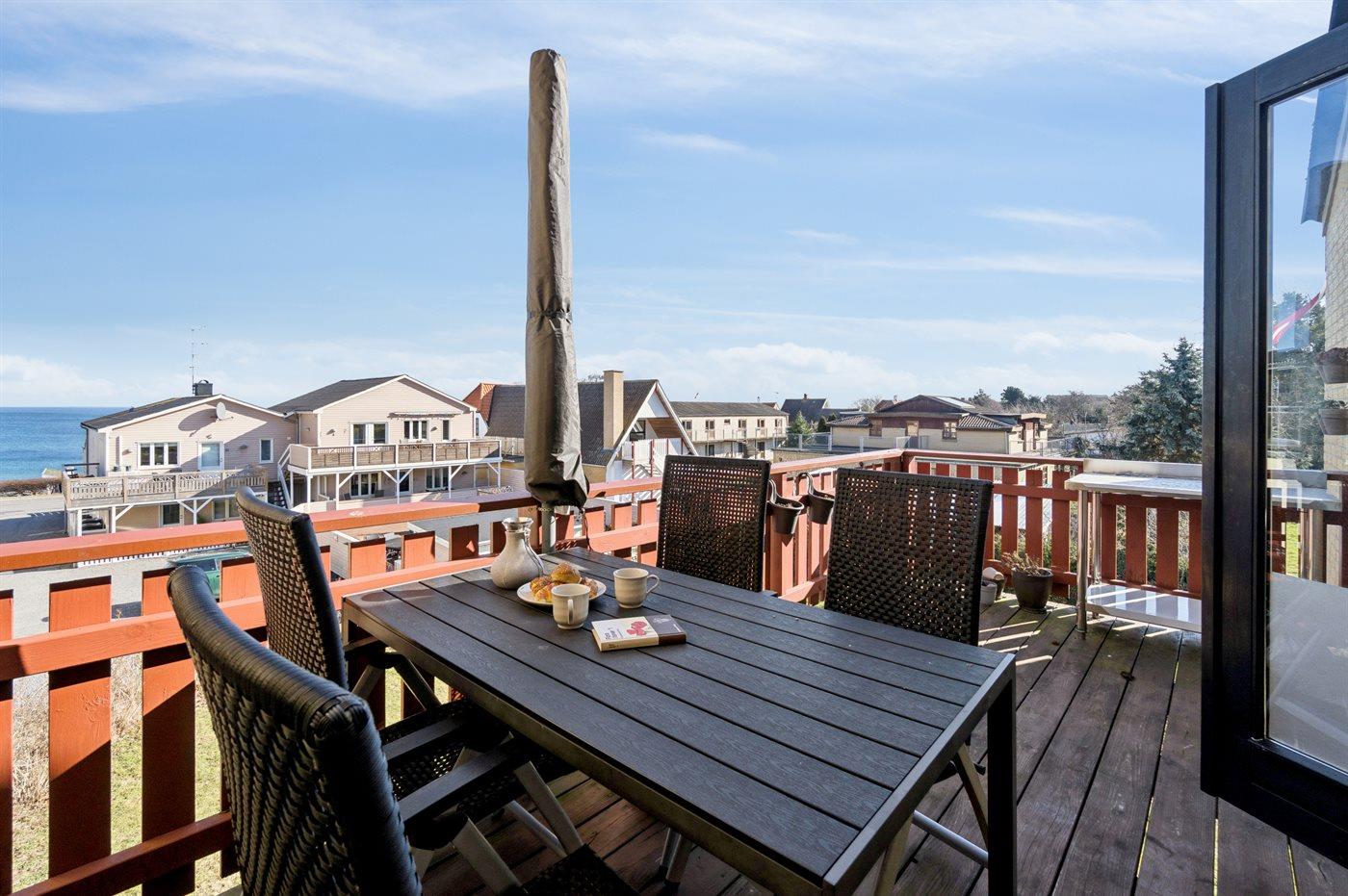 Lys ferielejlighed med havudsigt, altan, overdækket terrasse og moderne faciliteter i Allinge.